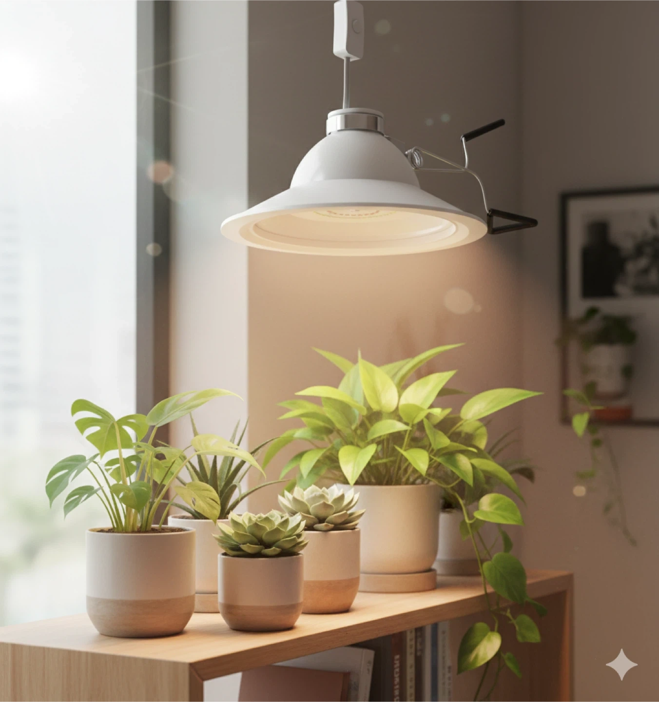 It can either be hung or flush mounted above the plant.