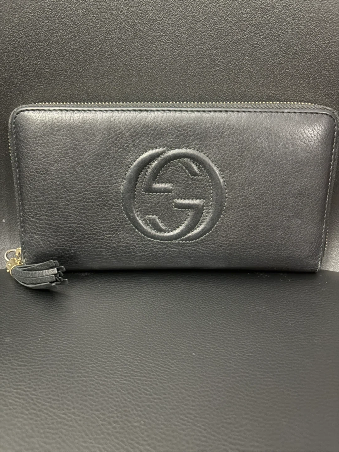 Selling a stylish authentic soho black leather wallet from Gucci! It's in great condition and has a classic design. Perfect for keeping your cards and cash organized.