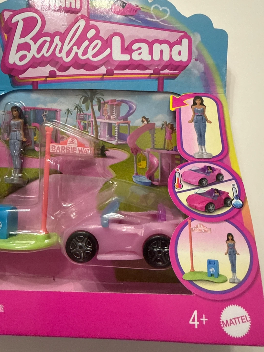 Selling a brand new Mini Barbie Land playset, still in its original packaging! This adorable playset is perfect for Barbie fans and collectors alike. It includes a miniature Barbie figure, a pink car, and other cute accessories to create your own Barbie world.