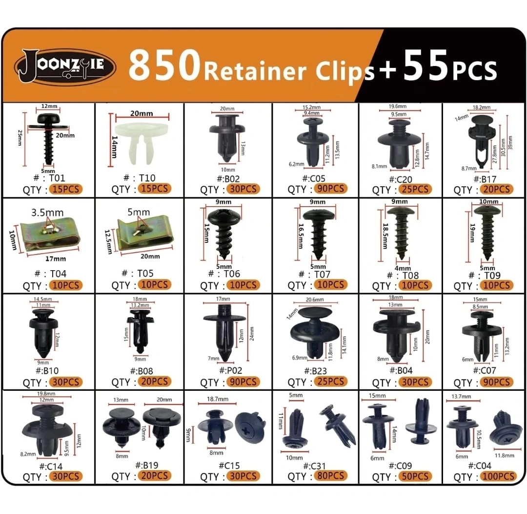 β’ 850PCS Auto Retainer & Push Clips (24 popular sizes)