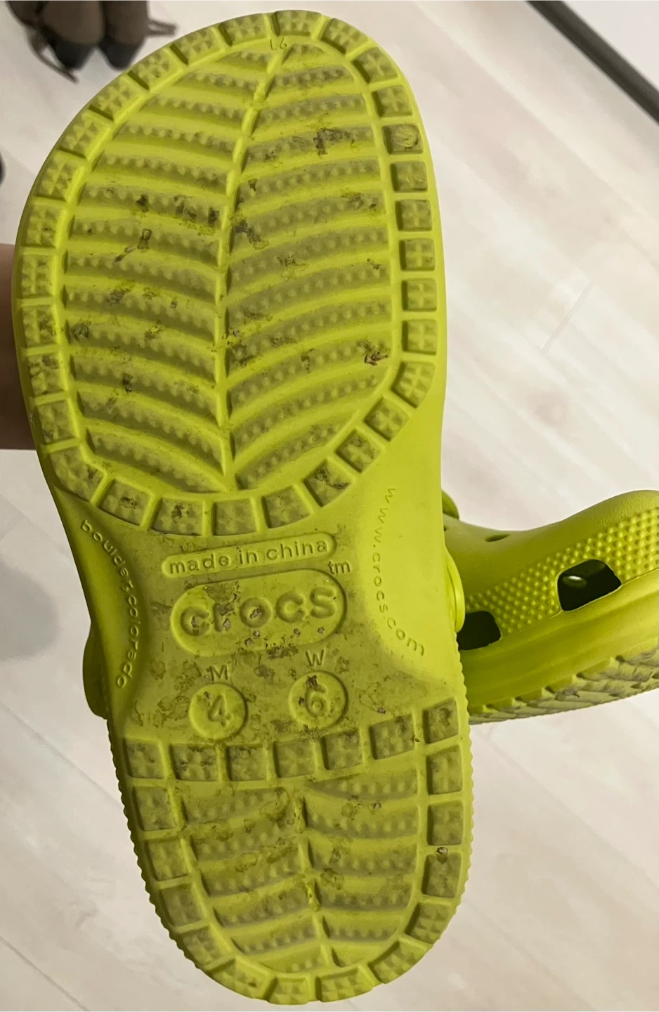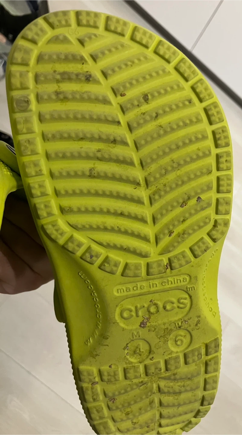 Used crocs for sale. Worn on the beach once. Men size 4, women size 6. The dirt (as shown in the pics can be washed off easily, will be washed off before handing over). Available on pick up basis only. Price is slightly negotiable.