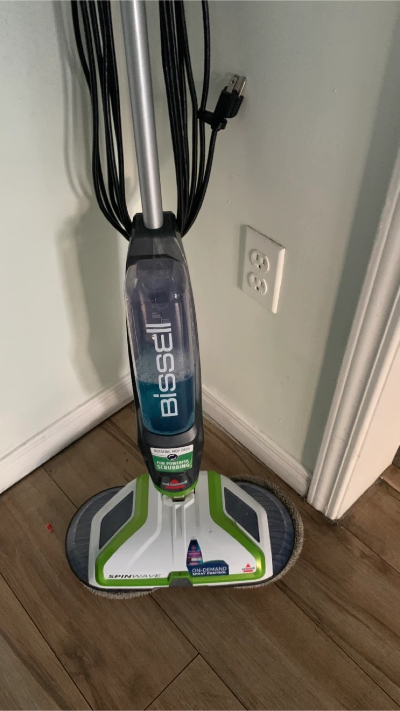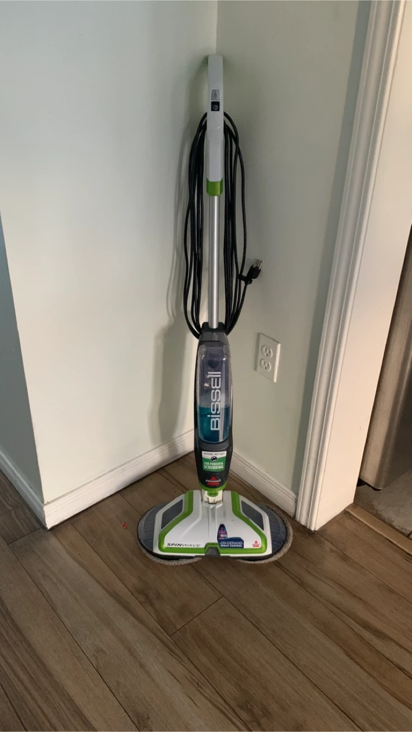 Selling a Bissell SpinWave hard floor mop! It's great for cleaning and scrubbing your hard floors. The on-demand spray helps you control the amount of cleaning solution you use. It's in good condition and ready to go!