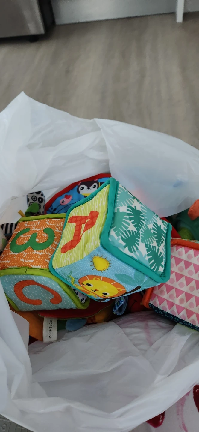FREE bundle of baby toys including Infantino, bright star and Hahaland items. There are soft blocks, a piano mat, and various plush toys with different textures and colours. These toys are great for sensory development and early learning!
