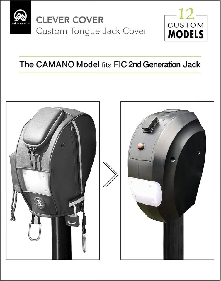 Finally, a Clever Cover that fits like a glove and protects your electric tongue jack from dirt, harsh elements and the weather.