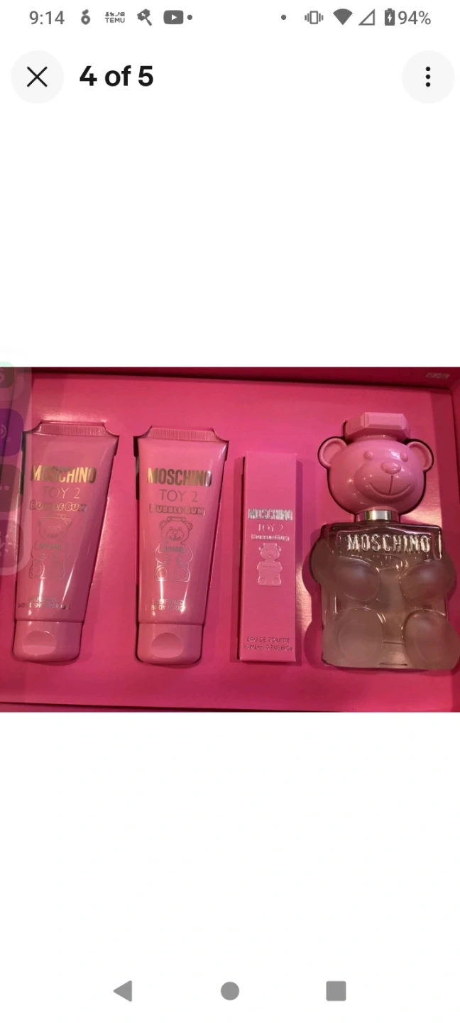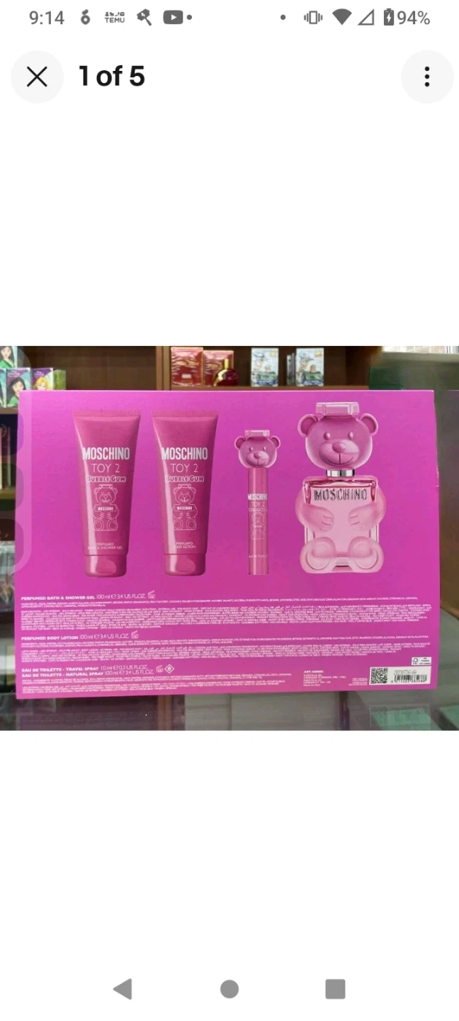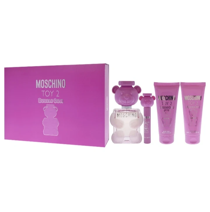 I'm selling a Moschino Toy 2 Bubble Gum perfume set! It includes a perfume, body lotion, bath & shower gel, and a travel spray. The set comes in its original box.