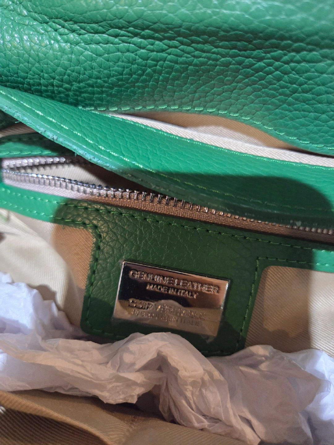 It's in brand new condition, 3 sections inside and perfect for adding a pop of colour to any outfit. The bag measures approximately 10 inches in length. Made in Italy with genuine leather!