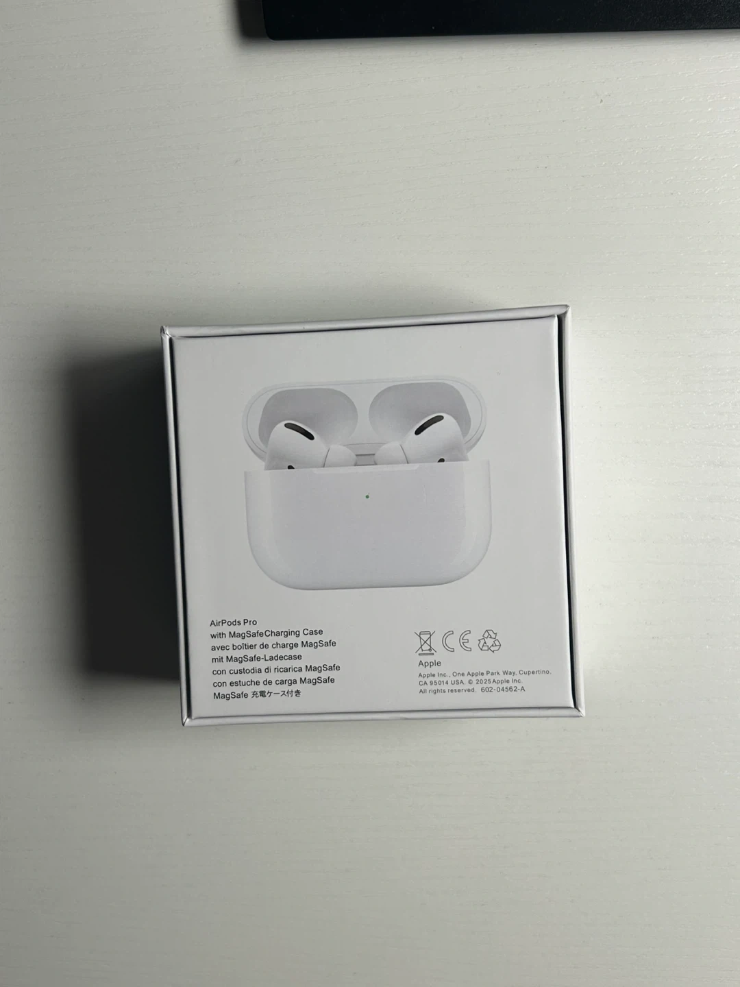 Apple AirPods Pro with MagSafe Charging Case. Includes original box and charging cable. Designed by Apple in California.