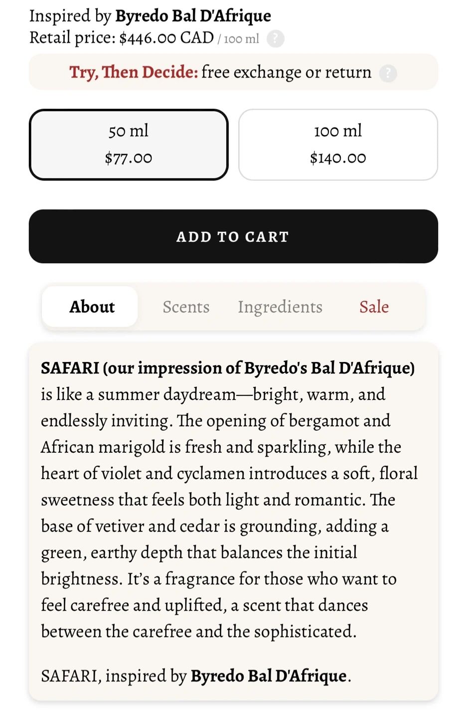 Buy & SellOAPOR Safari PerfumeOAPOR Safari Perfume$38OAPOR Safari perfume in a clear glass bottle with a black sphere cap. Dupe for ByRedo’s Bal D’Afrique. 90% left.BrandOAPORWHERE TO MEETCheck LocationView MapSELLERGloriaCarpenter442 reviews0 chats·1 favorites·7 viewsSEND CHAT TO SELLERHi Gloria! I’m interested in your listing.Hi Gloria! I’m interested in your listing.Get the Karrot app to chatSign In to chat