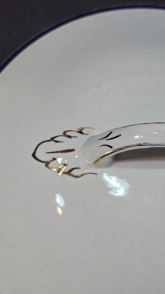White Enamel Tureen with Blue Rim by Swinnertons Ltd