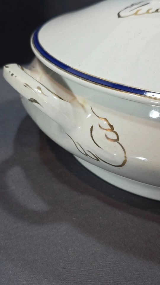 White Enamel Tureen with Blue Rim by Swinnertons Ltd