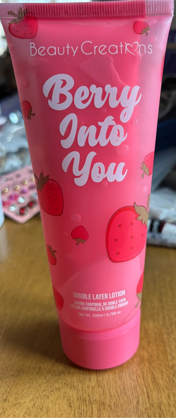 This is a Beauty Creations Double Layer Lotion with a hydrating serum. It's enriched with strawberry extract, hyaluronic, ceramides, and nourishing oils. It contains 200ml (6.76 fl oz) of product.