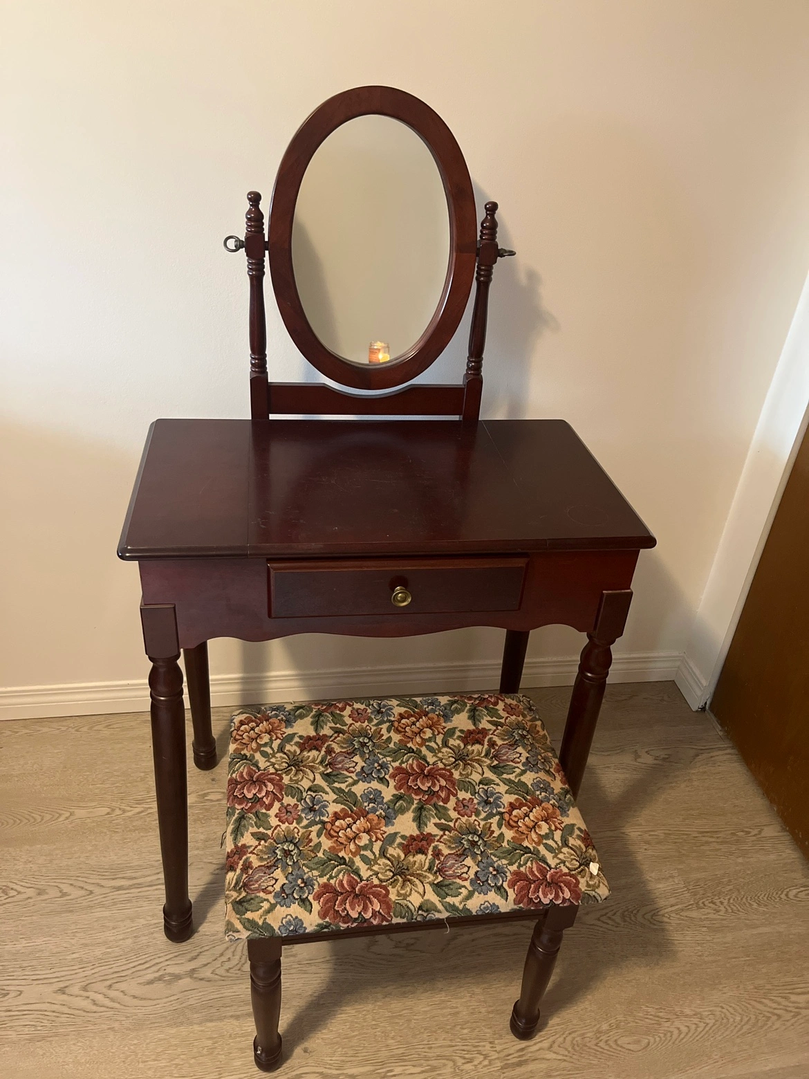 Buy & SellVanity & stoolVanity & stool$35Brown vanity and stool. Some scratches, wobbly left leg that can be easily fixed. $35 oboConditionGoodWHERE TO MEETCheck LocationView MapSELLERKassSunnyside13912 reviews2 chats·5 favorites·76 viewsSEND CHAT TO SELLERHi Kass! I’m interested in your listing.Hi Kass! I’m interested in your listing.Get the Karrot app to chatSign In to chat