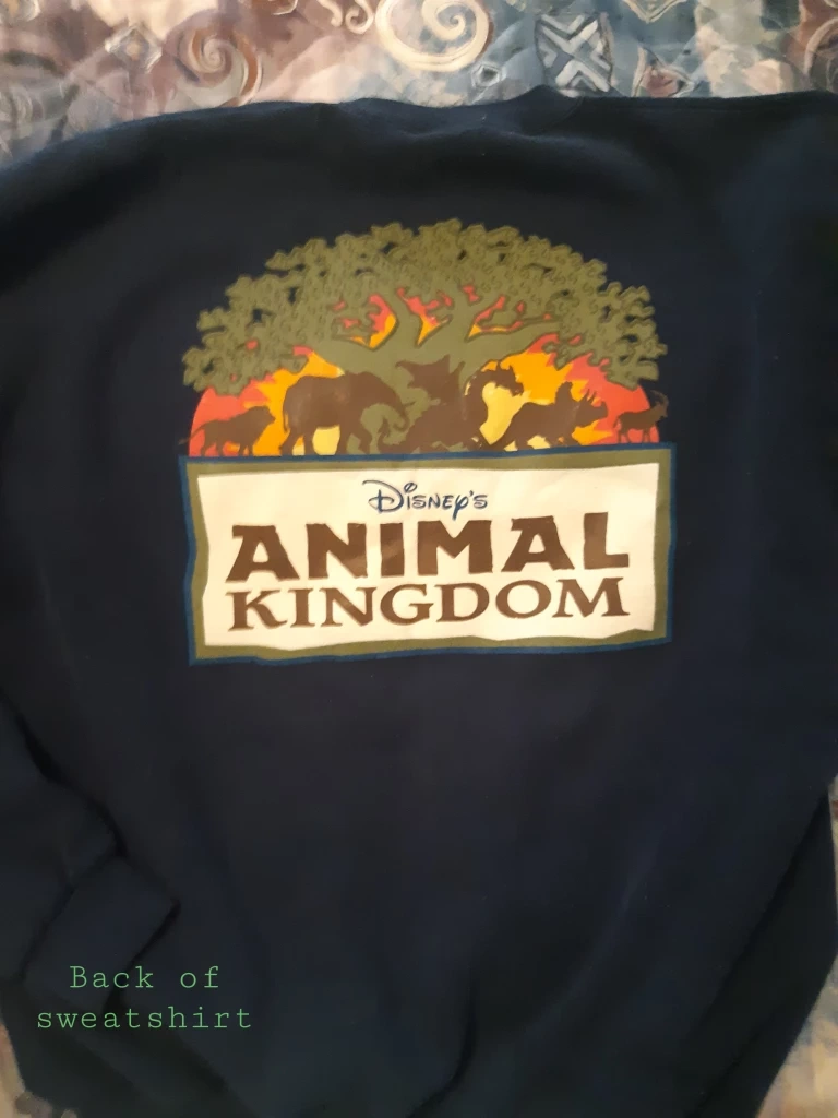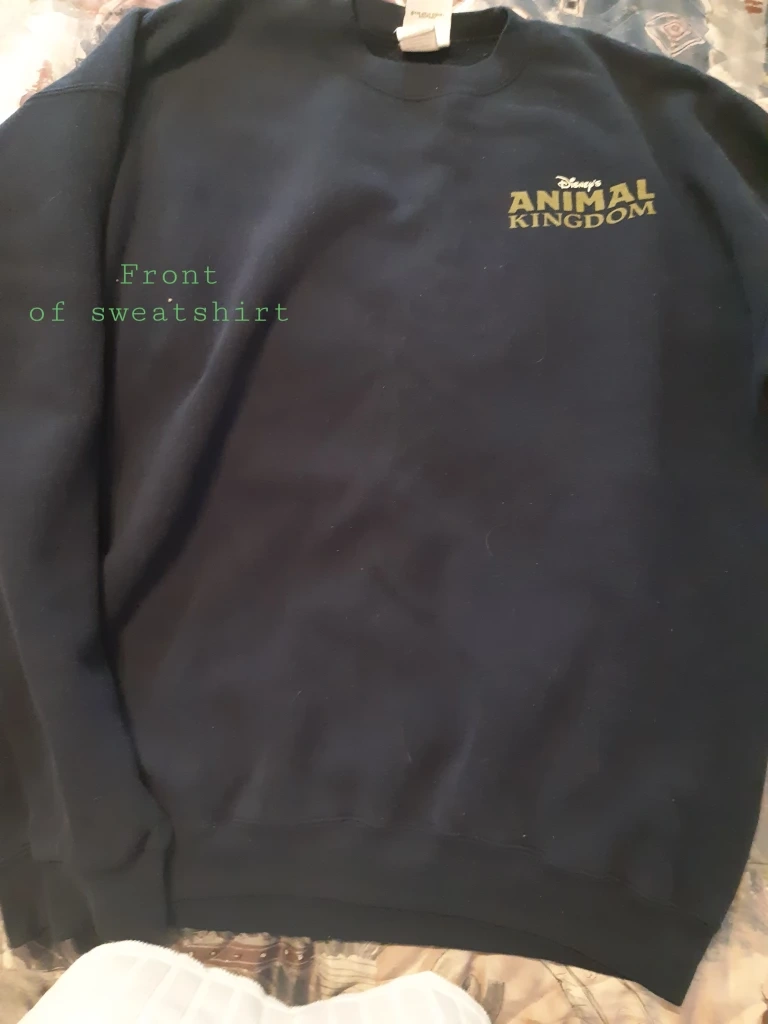 Dark navy blue sweatshirt. Features Animal Kingdom logo on the front and back. Made in the U.S.A. Size XXL.