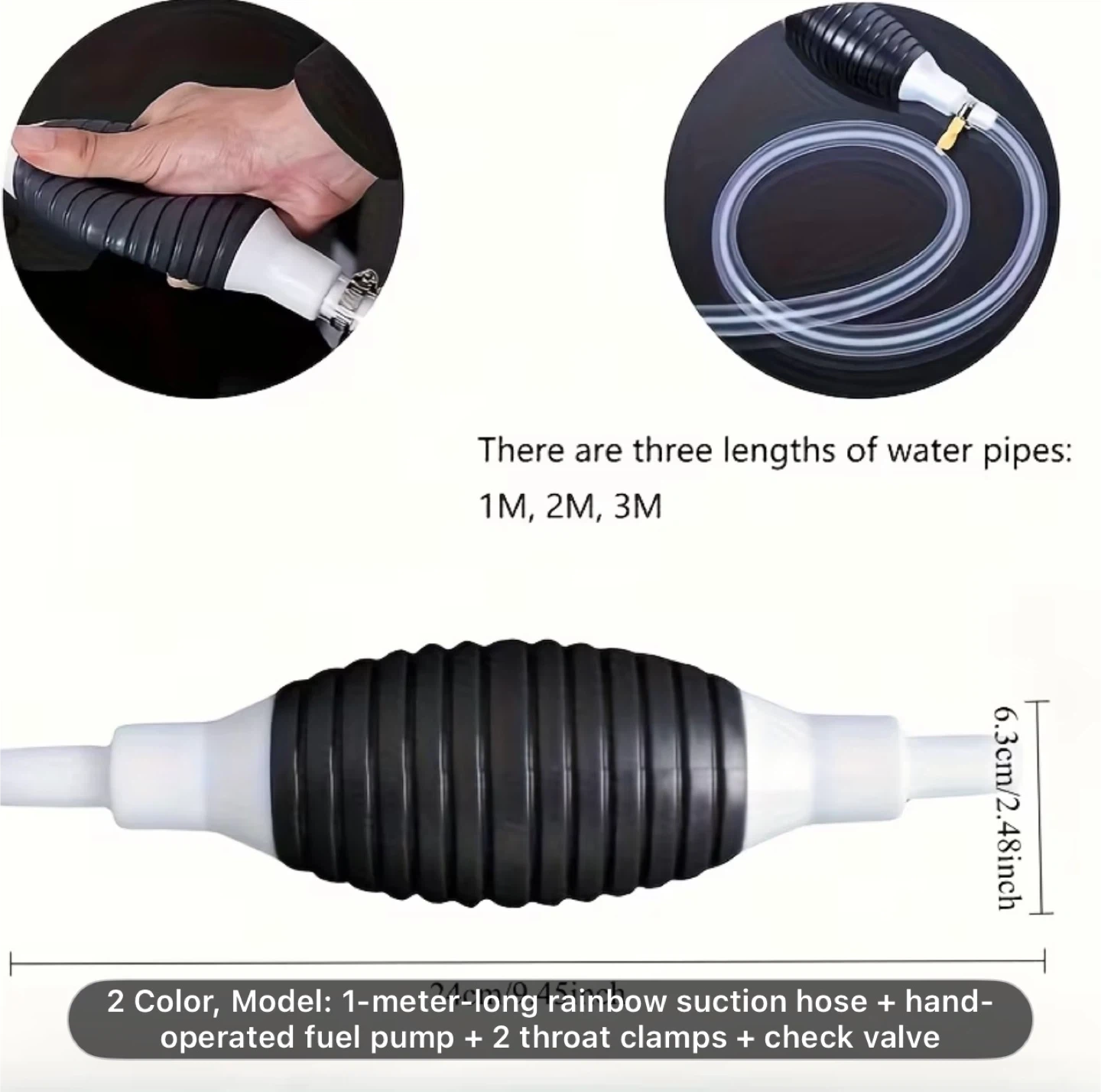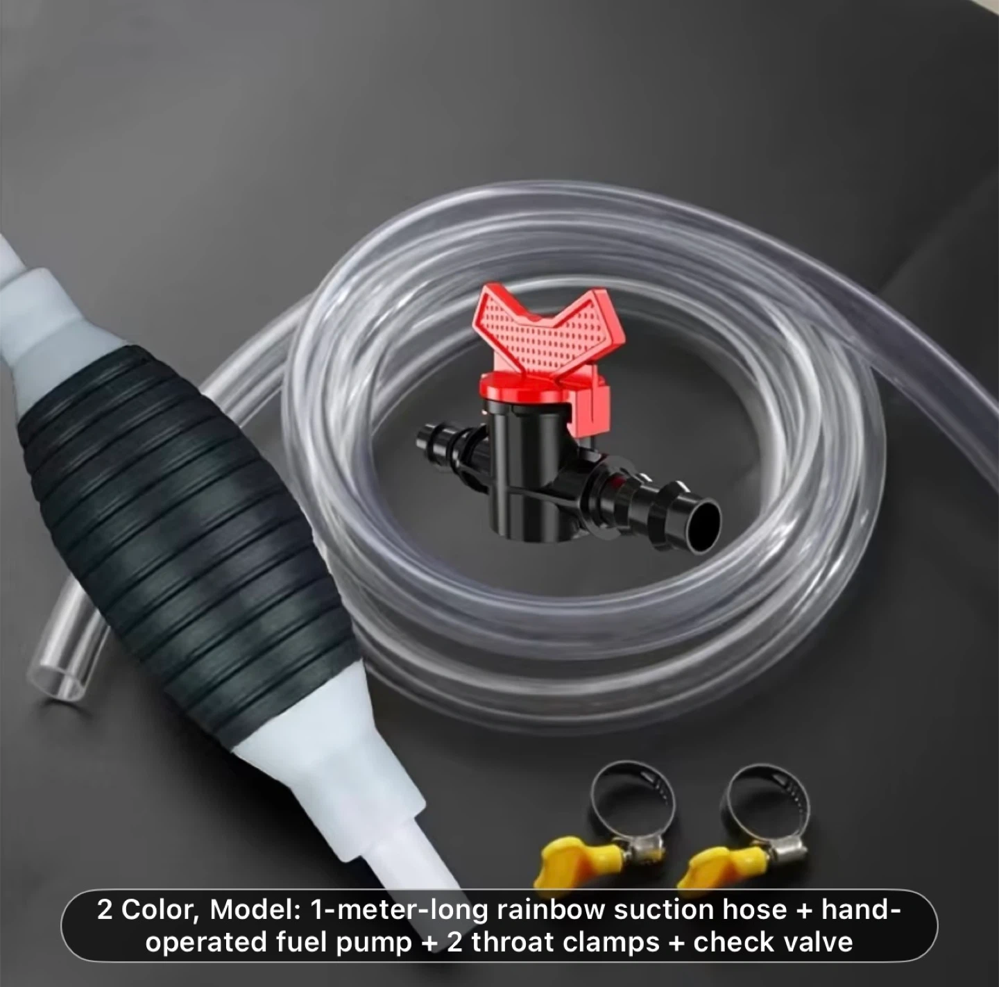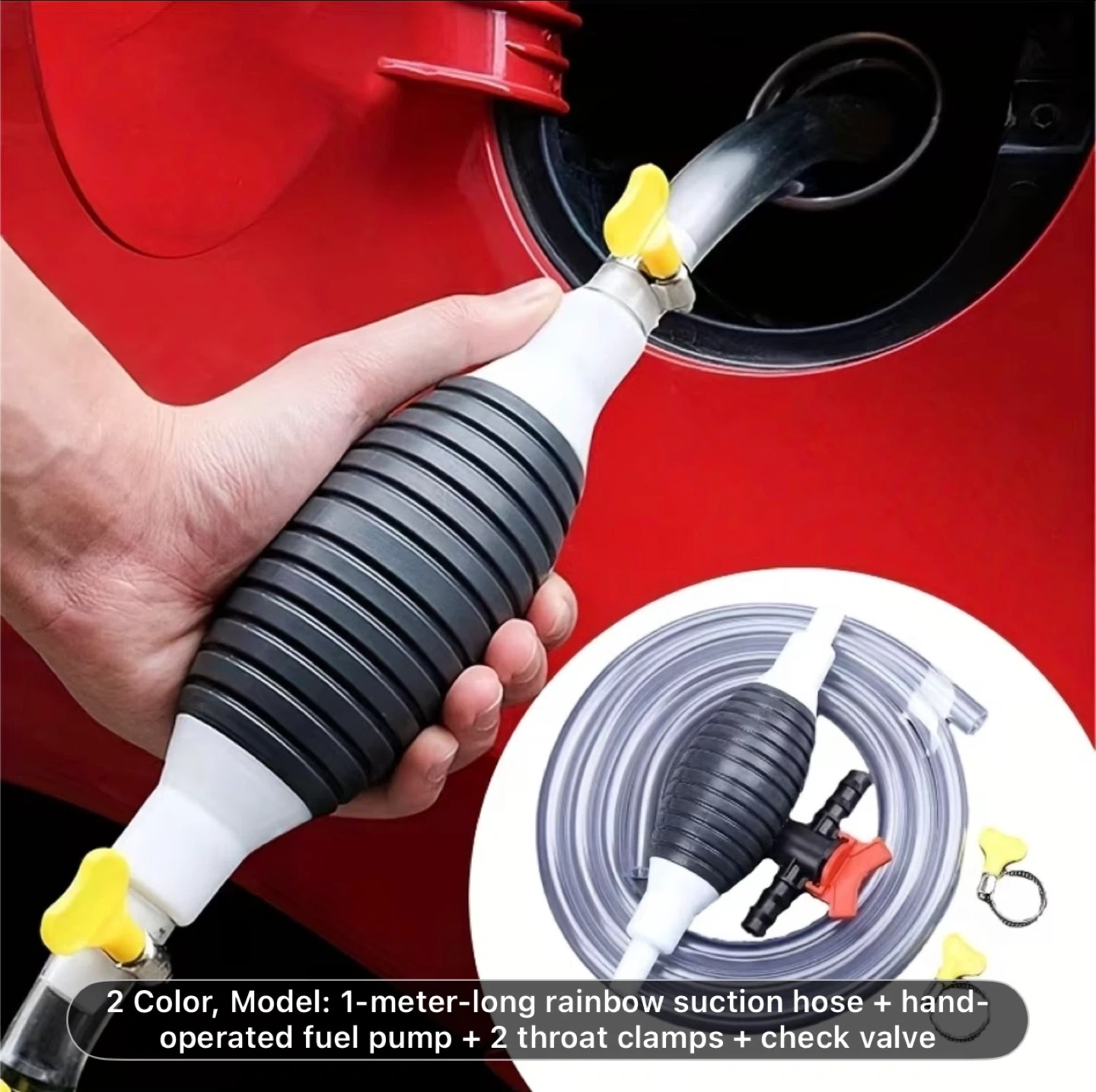 Multifunctional Liquid Suction Pump, Manual Fuel Transfer Pump with Gasoline Hose, Portable Siphon Pump Suitable for Gasoline, Diesel, and Other Liquids/Water. Includes 39.37inch Siphon Hose + Hand Crank Fuel Pump + 2 Hose Clamps + Leak-Proof Valve
