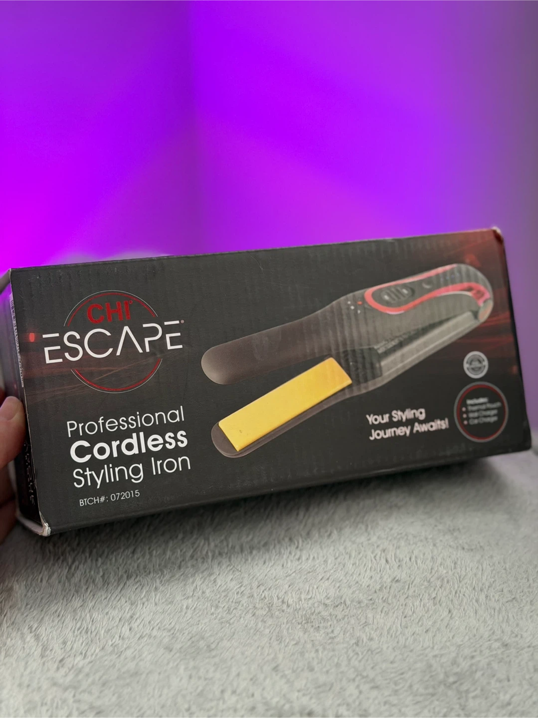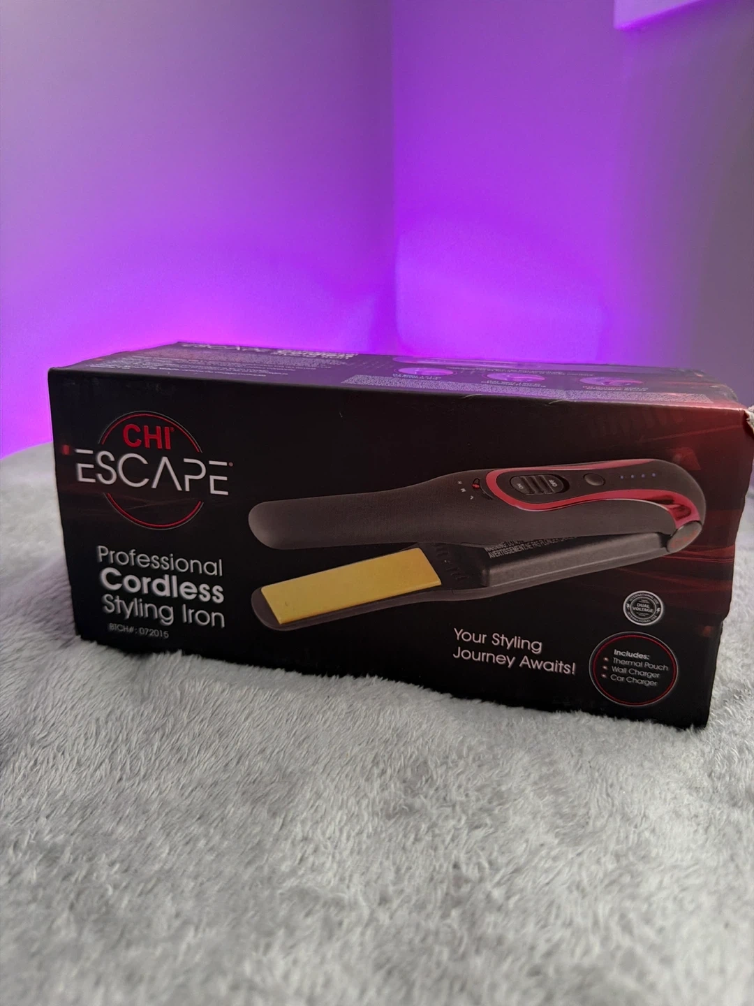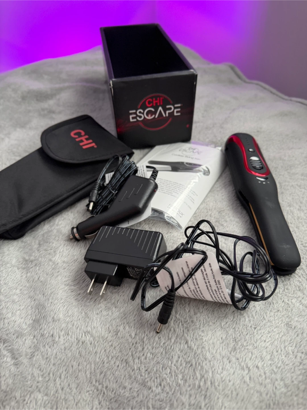 This is the CHI Escape Professional Cordless Styling Iron. It's a professional cordless styling iron with a travel pouch and car charger included. Perfect for on-the-go touch-ups and styling wherever you are!