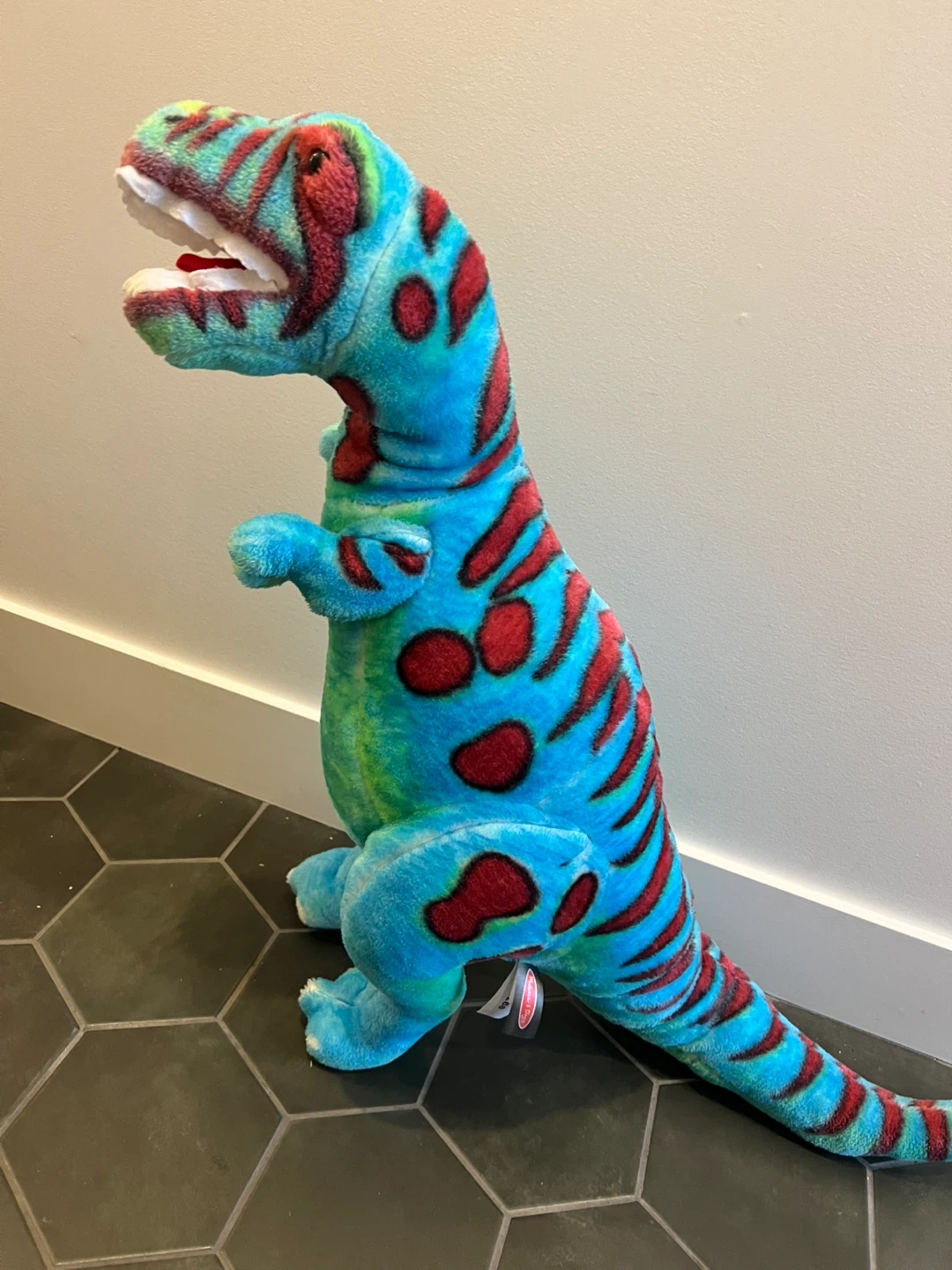 Here's a super cute T-Rex plush from Melissa & Doug! It's in great condition and would make a wonderful addition to any kiddo's collection or a fun decorative piece.
