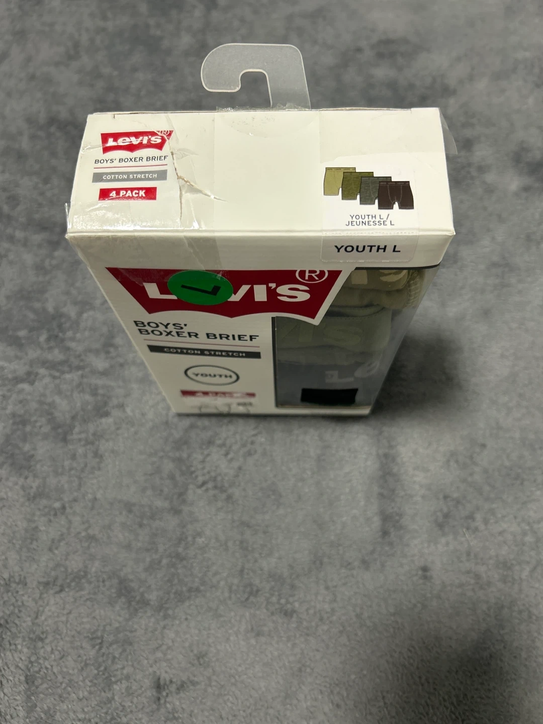Brand new Levi's boys' boxer briefs, size youth L. This is a 4-pack of cotton stretch boxer briefs in assorted colors. The box is included! I opened the box but they're brand new, they didn't fit my son, totally new