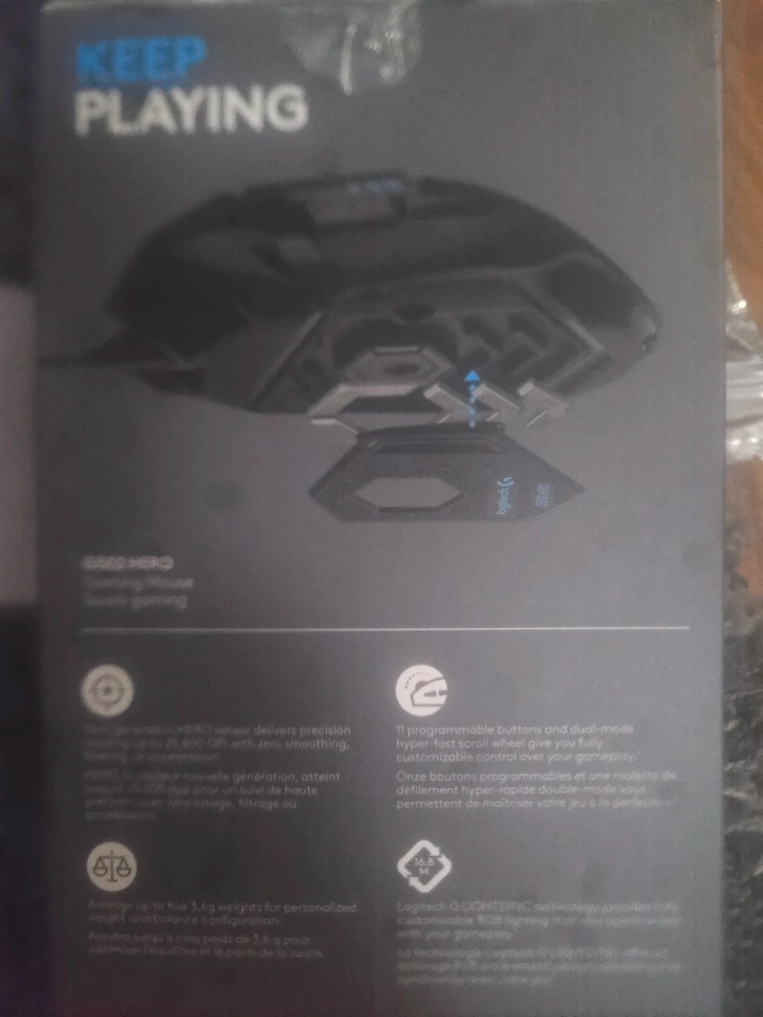 Selling a brand new Logitech G502 HERO gaming mouse! It's still in its original box. This mouse features a HERO sensor for precise tracking up to 25,600 DPI with zero smoothing. It also has 11 programmable buttons and a dual-mode hyper-fast scroll wheel that you can customize to control your gameplay. You can also adjust the weight and balance with up to five 3.6g weights for personalized configuration. Logitech LIGHTSYNC technology provides customizable RGB lighting that you can sync with your other gear