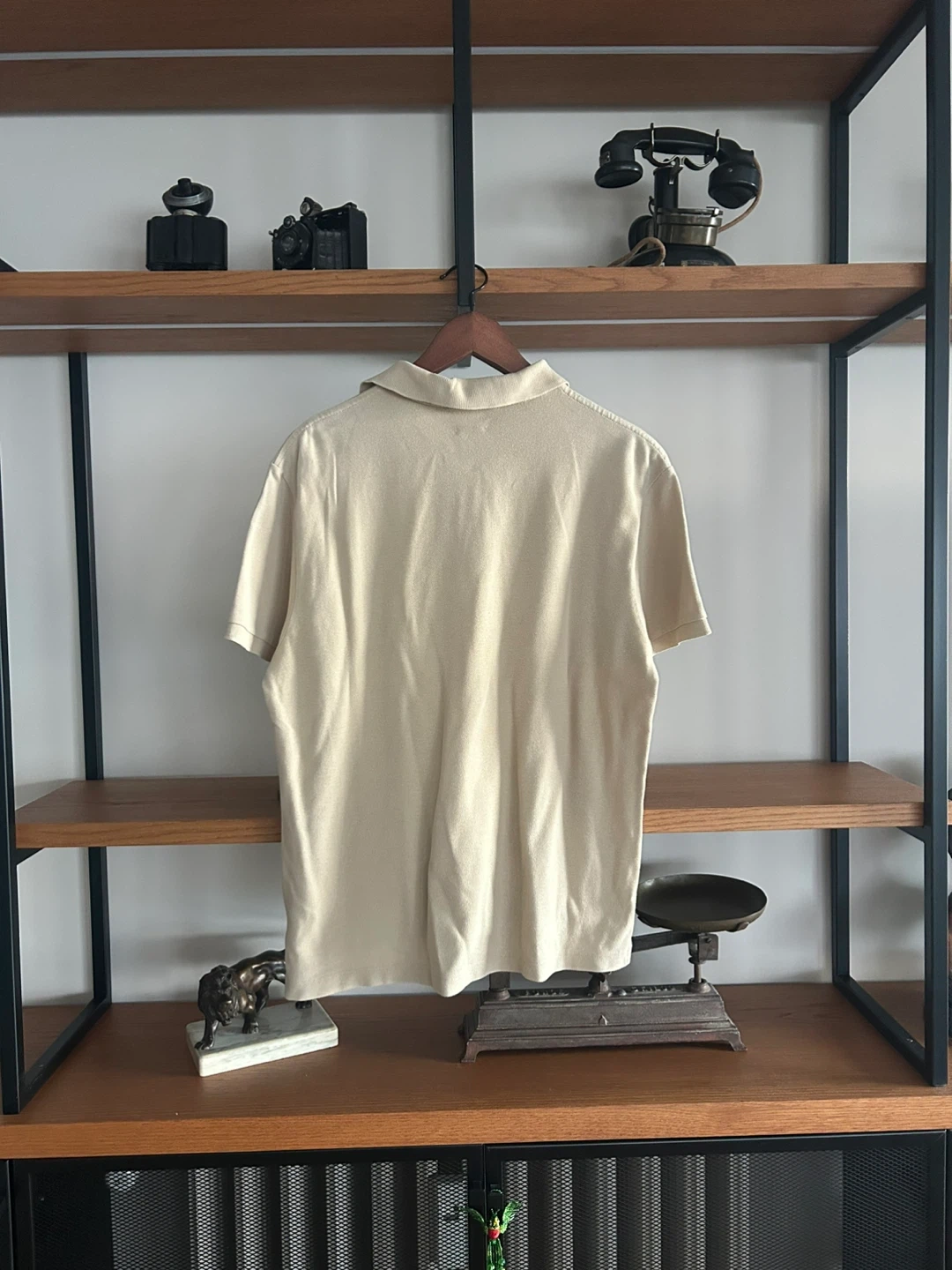 Selling a Polo Ralph Lauren polo shirt in a custom fit. It's a size medium and in a neutral, beige colour. Great for a casual, classic look!