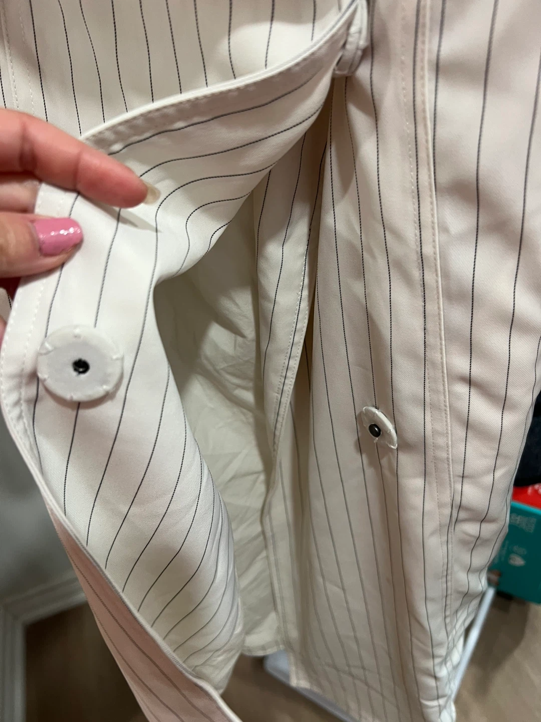 Here's a BCBGMAXAZRIA trench coat in size XS! It features a stylish striped pattern. Perfect for adding a touch of elegance to your wardrobe