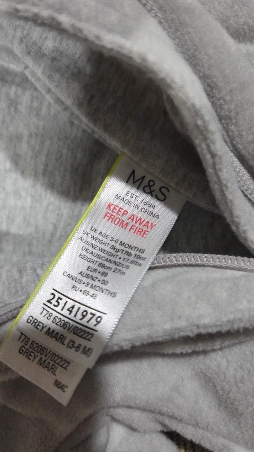 M&S Grey Marl Star Print Snowsuit (3-6M)