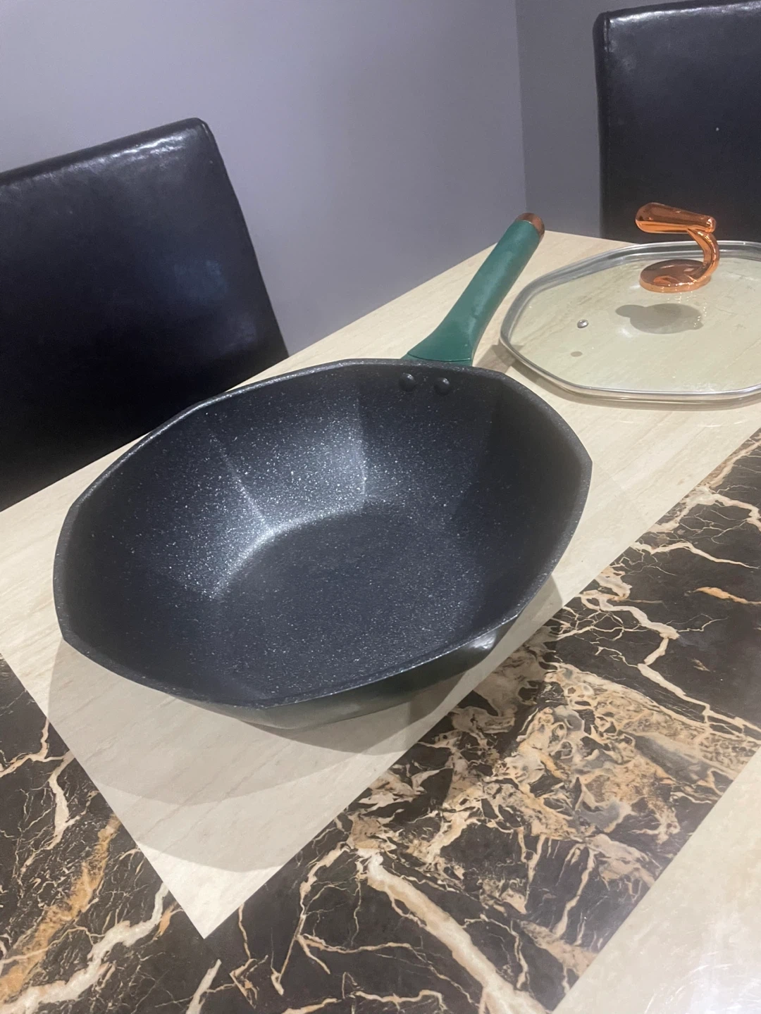 Selling a nonstick pan that's in great condition! It comes with a lid and has a nice green handle. Perfect for stir-frying your favourite meals!
