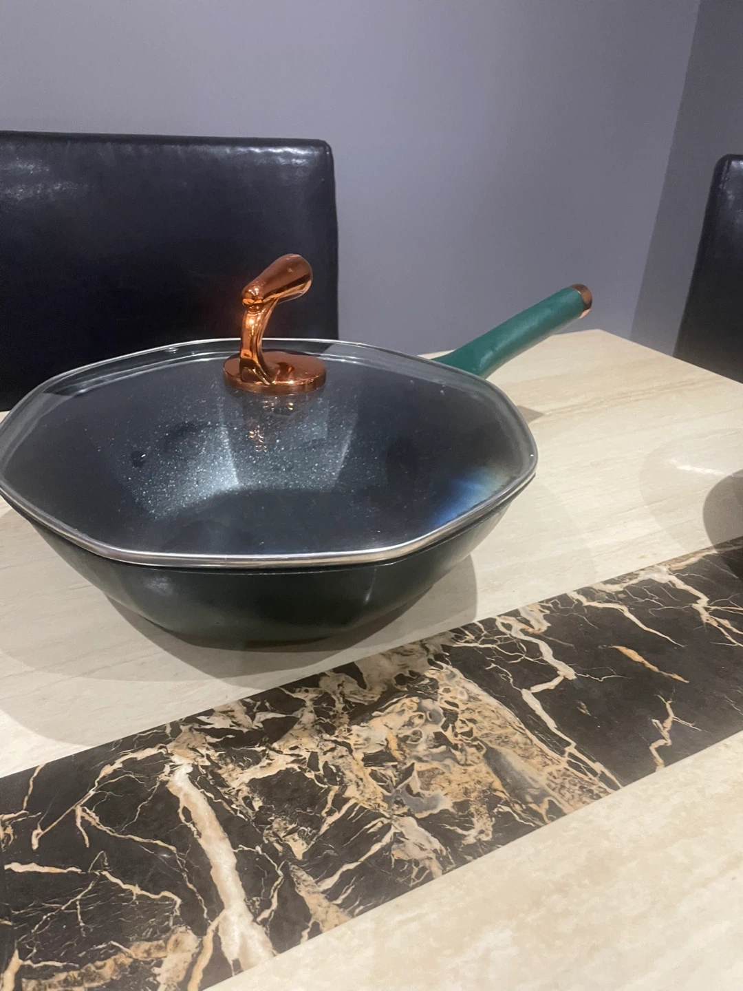 Selling a nonstick pan that's in great condition! It comes with a lid and has a nice green handle. Perfect for stir-frying your favourite meals!