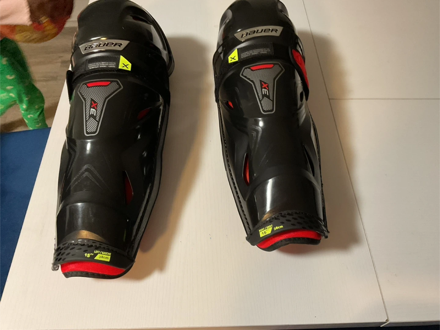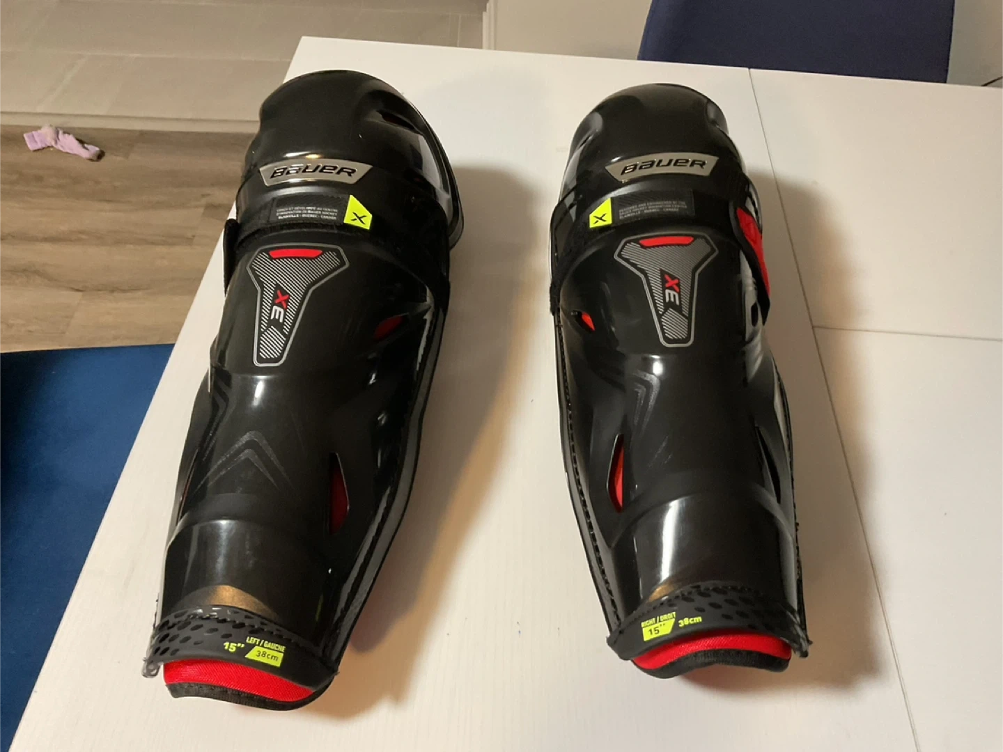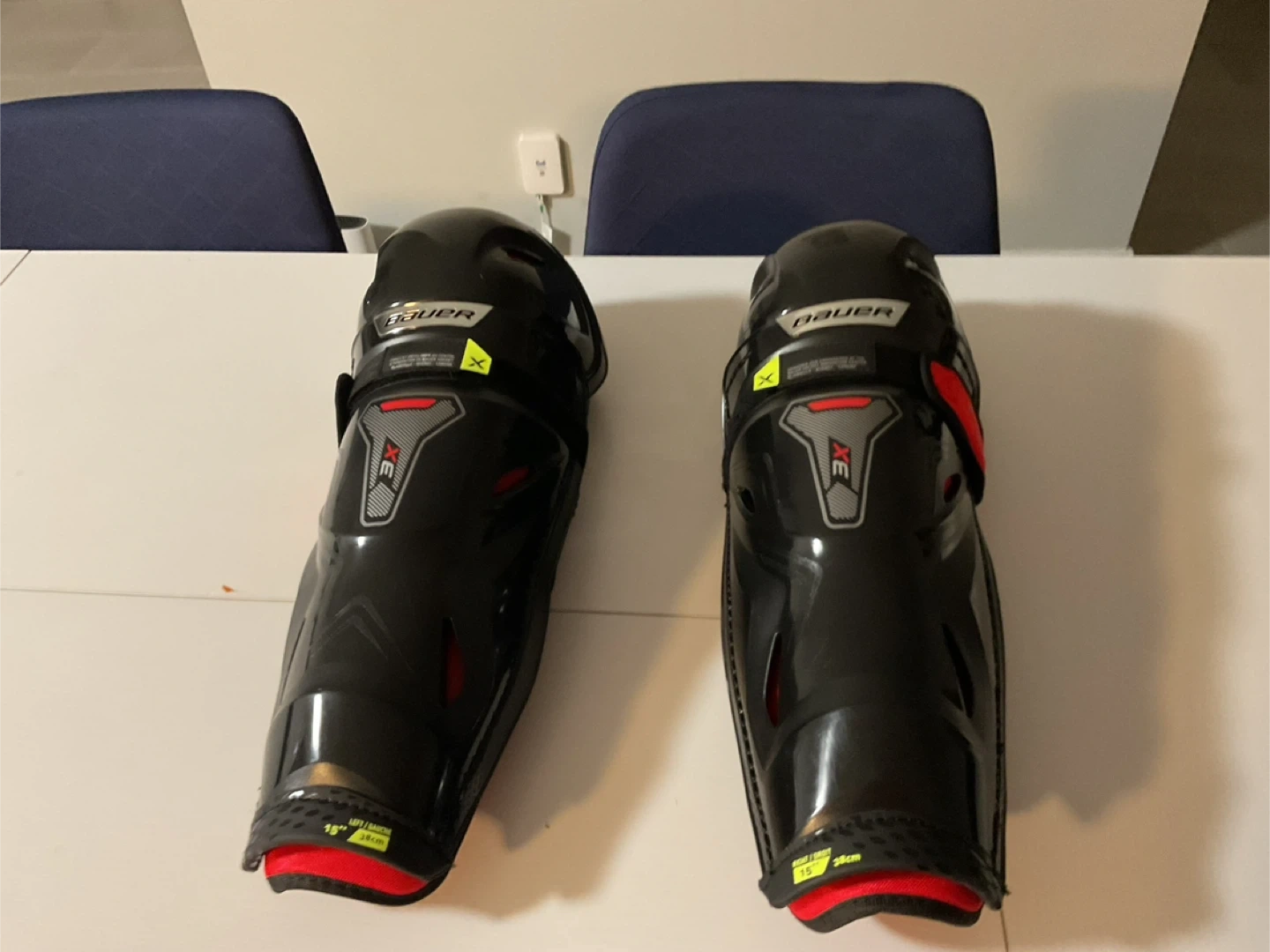 Selling a pair of Bauer X Knee pads. They are black with red accents and in great shape! The size is 15 inches / 38 cm