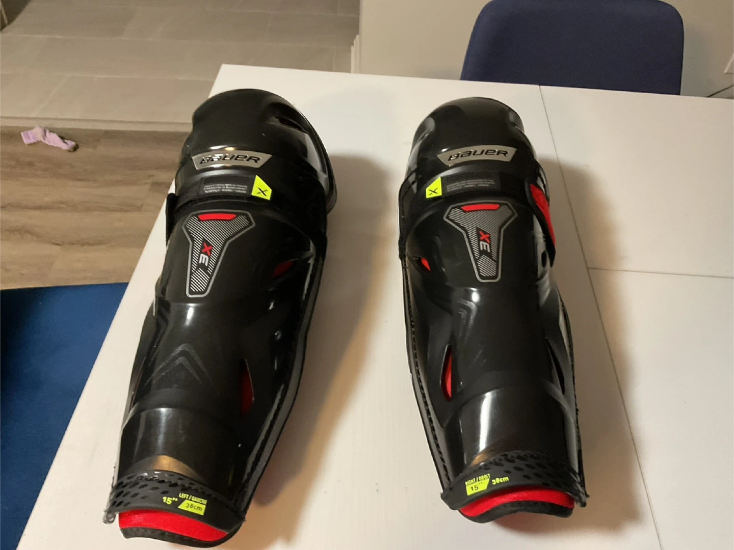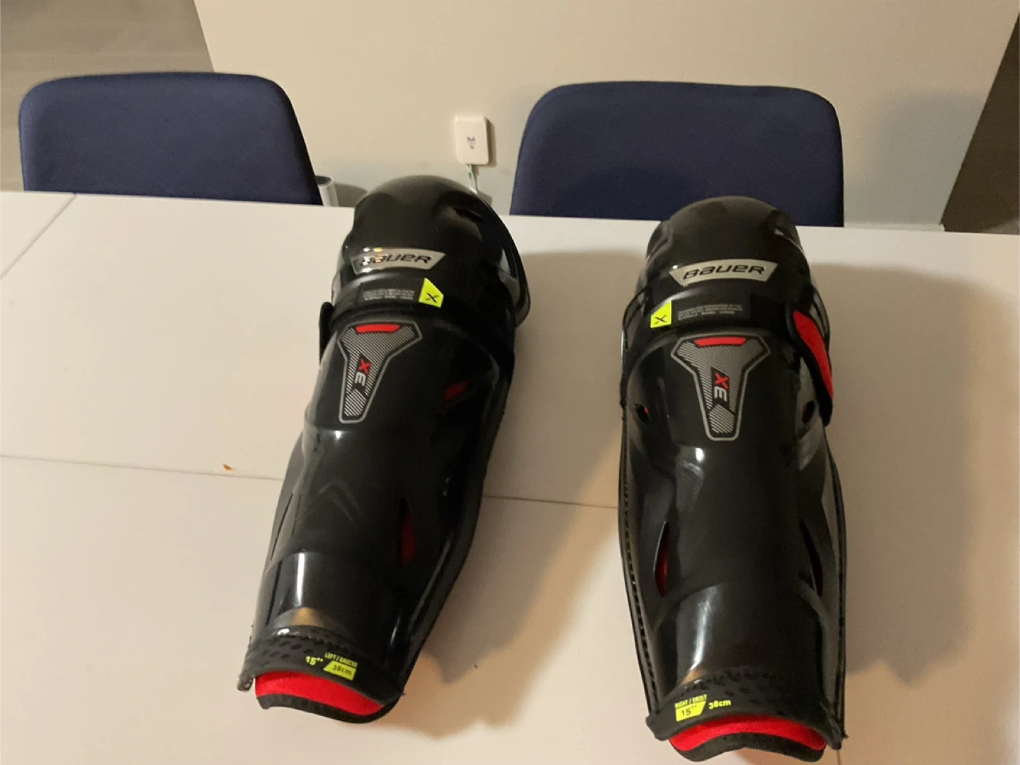 Selling a pair of Bauer X Knee pads. They are black with red accents and in great shape! The size is 15 inches / 38 cm
