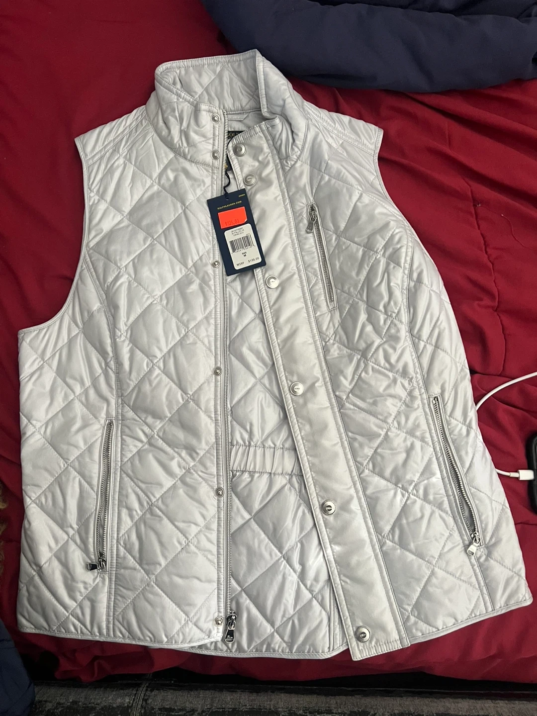 Here's a Polo Golf Ralph Lauren quilted vest in size m! It's a stylish and comfortable piece, perfect for layering. The vest features a quilted design and a full zip closure. Great for adding a touch of sporty elegance to your outfit!