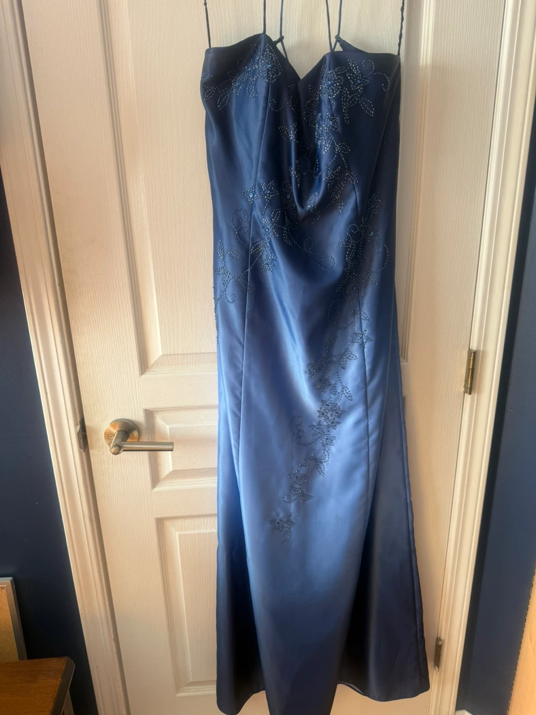 Selling a beautiful Jessica evening dress in size 16. The dress is a lovely shade of blue and features delicate beading. It's made of 100% acetate lining/doublure. Perfect for a special occasion!