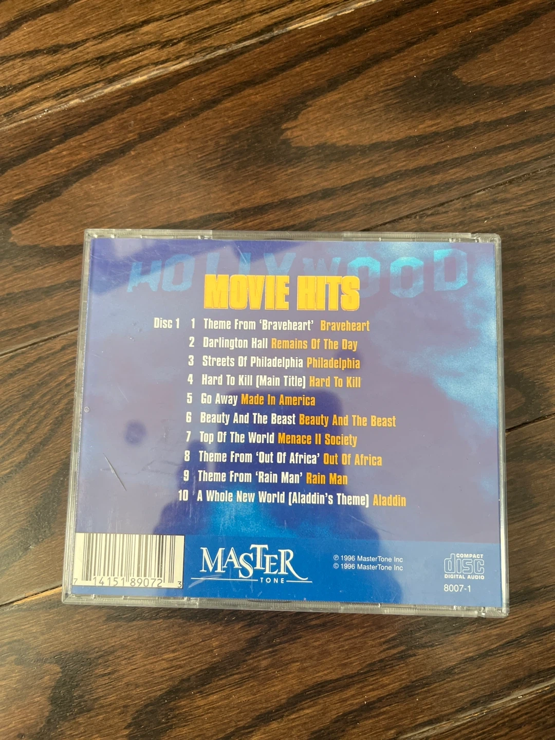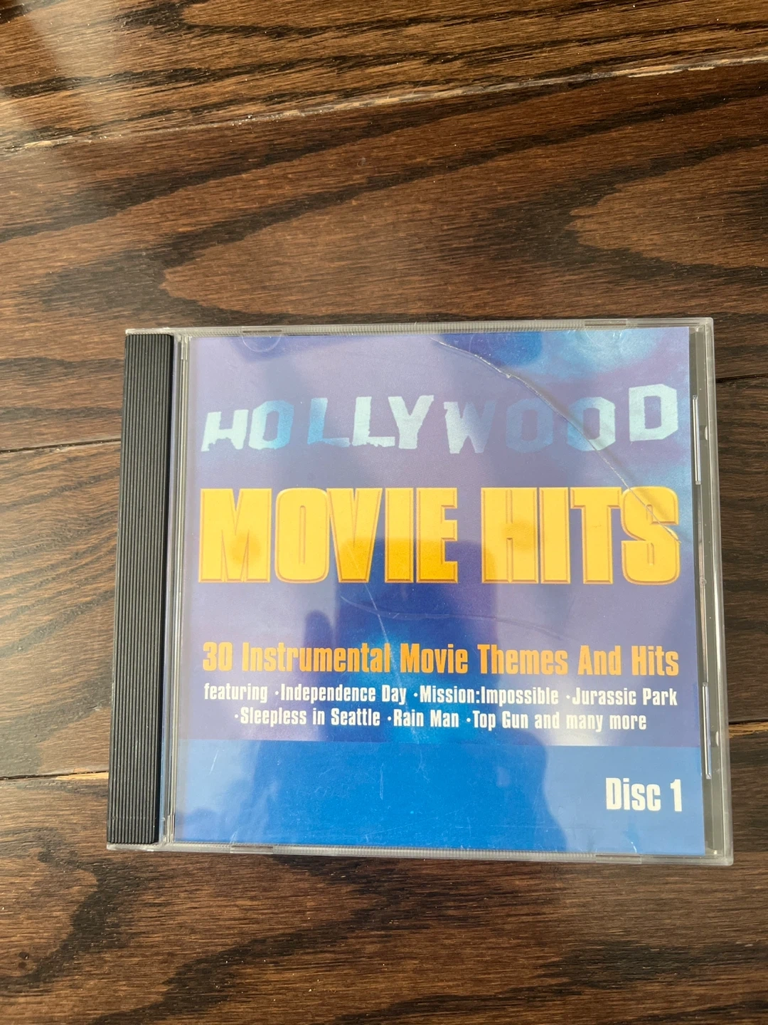 Selling a Hollywood Movie Hits CD, Disc 1. It features 30 instrumental movie themes and hits, including music from Independence Day, Mission: Impossible, Jurassic Park, Sleepless in Seattle, Rain Man, Top Gun, and many more! Enjoy some classic movie soundtracks