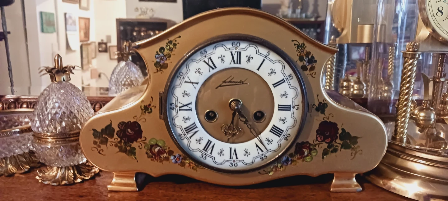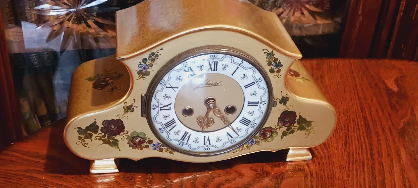 Selling a beautiful antique Gwrman Mechanical Winding up mantel clock with a winding key. . It features a classic design with Roman numerals and floral accents. Comes with the winding key to keep it ticking!! It is beautiful handpainted with floral design. 11"×7"×4". It works.. ALL MY PRICES ARE NEGOTIABLE !! Made in Germany 🇩🇪.