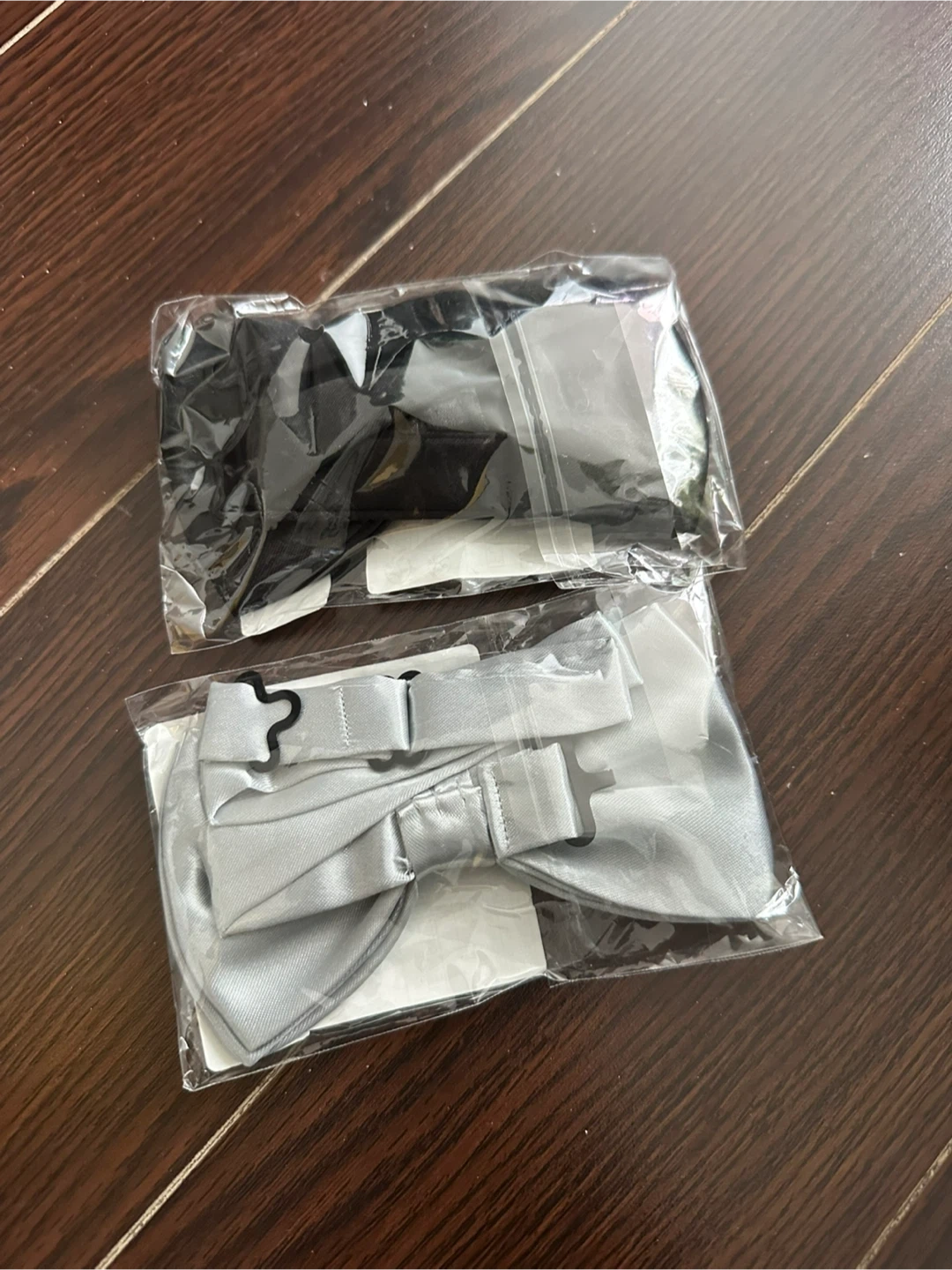Selling two brand new bow ties, still in their original packaging! One is black and the other is silver. Perfect for a formal event or adding a touch of class to your outfit
