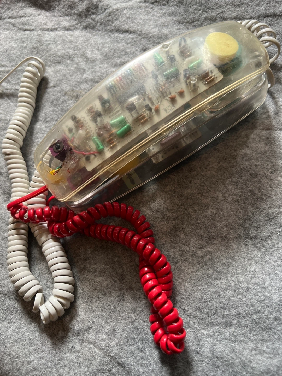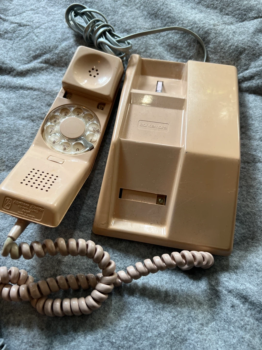 Selling a collection of vintage phones! There's a pink see-through phone with a blue cord, a beige TELEXMAX cordless phone with its base, and a rotary phone. All in used condition, perfect for collectors or those looking for a retro vibe!