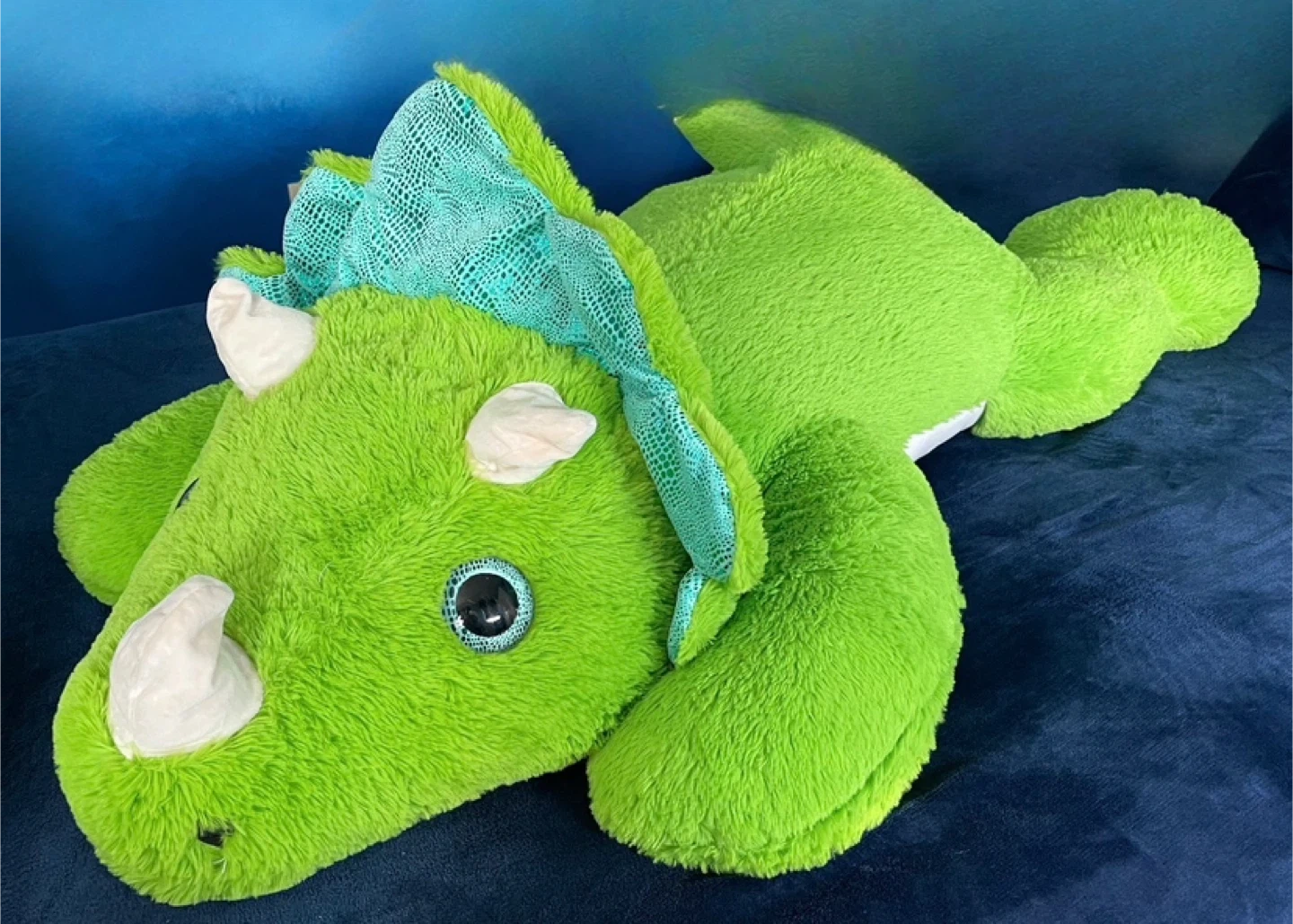 Selling a cute, green triceratops plush toy! It's in great condition and ready for a new home. The plush is soft and cuddly, perfect for kids or dinosaur lovers! Used mainly for display at the foot of the bed.