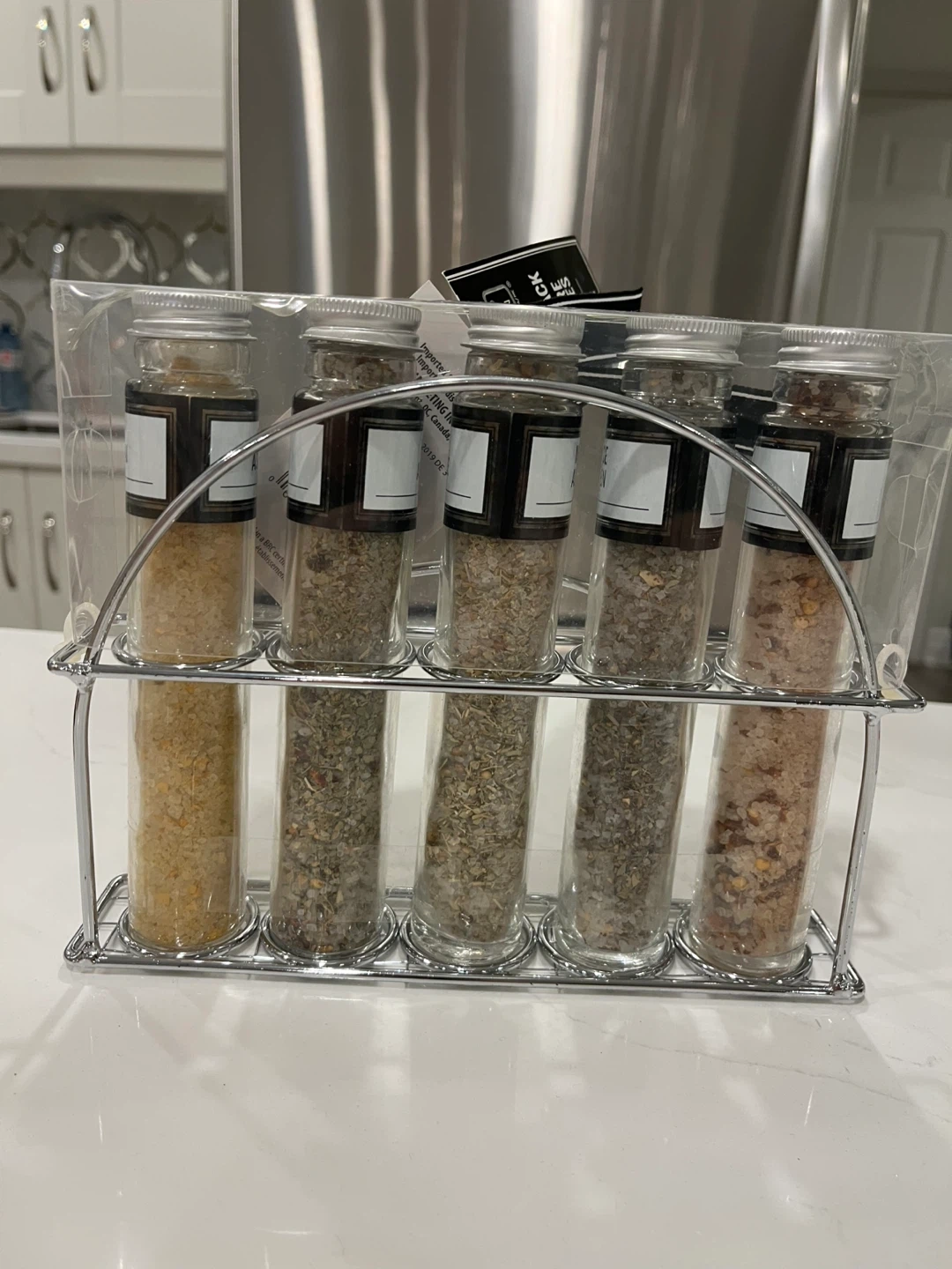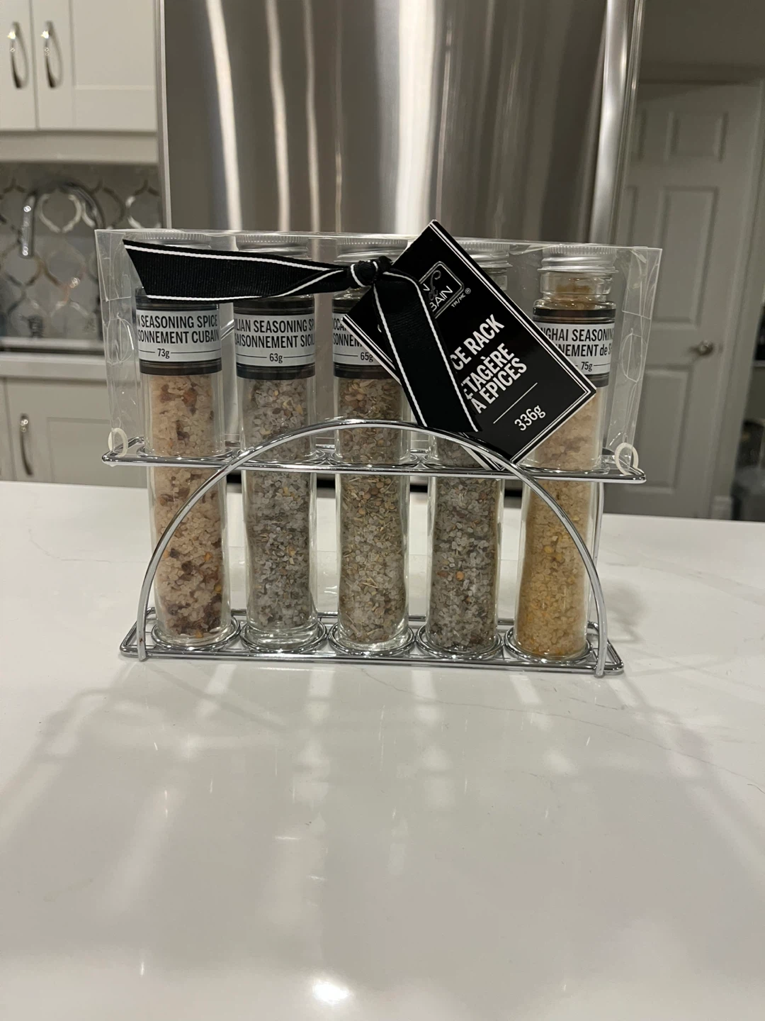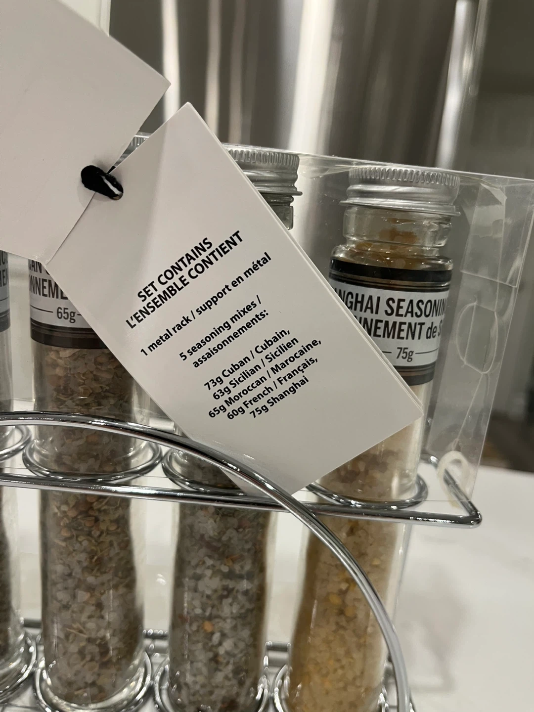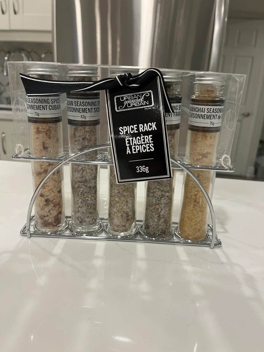 Selling a brand new Urban Spa spice rack set! It contains 5 seasoning mixes (Cuban, Sicilian, Moroccan, French, and Shanghai) and a metal rack. Perfect for adding flavour to your cooking! Great hostess gift or general gift