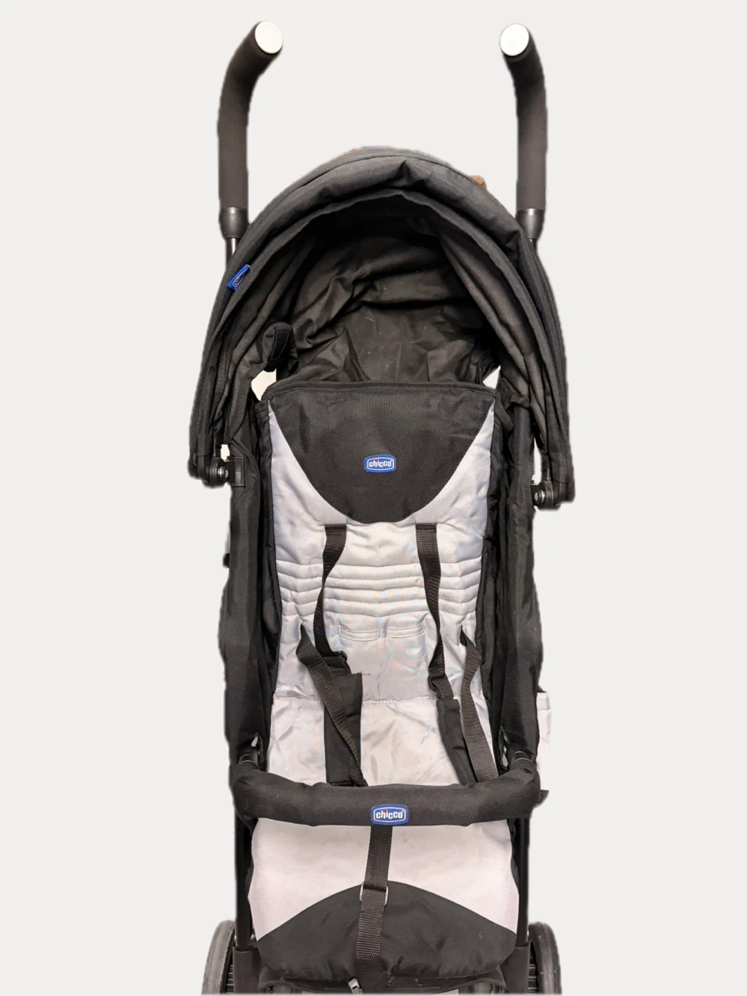 Chicco Quick-Fold stroller in black/grey—ideal for city walks and travel.