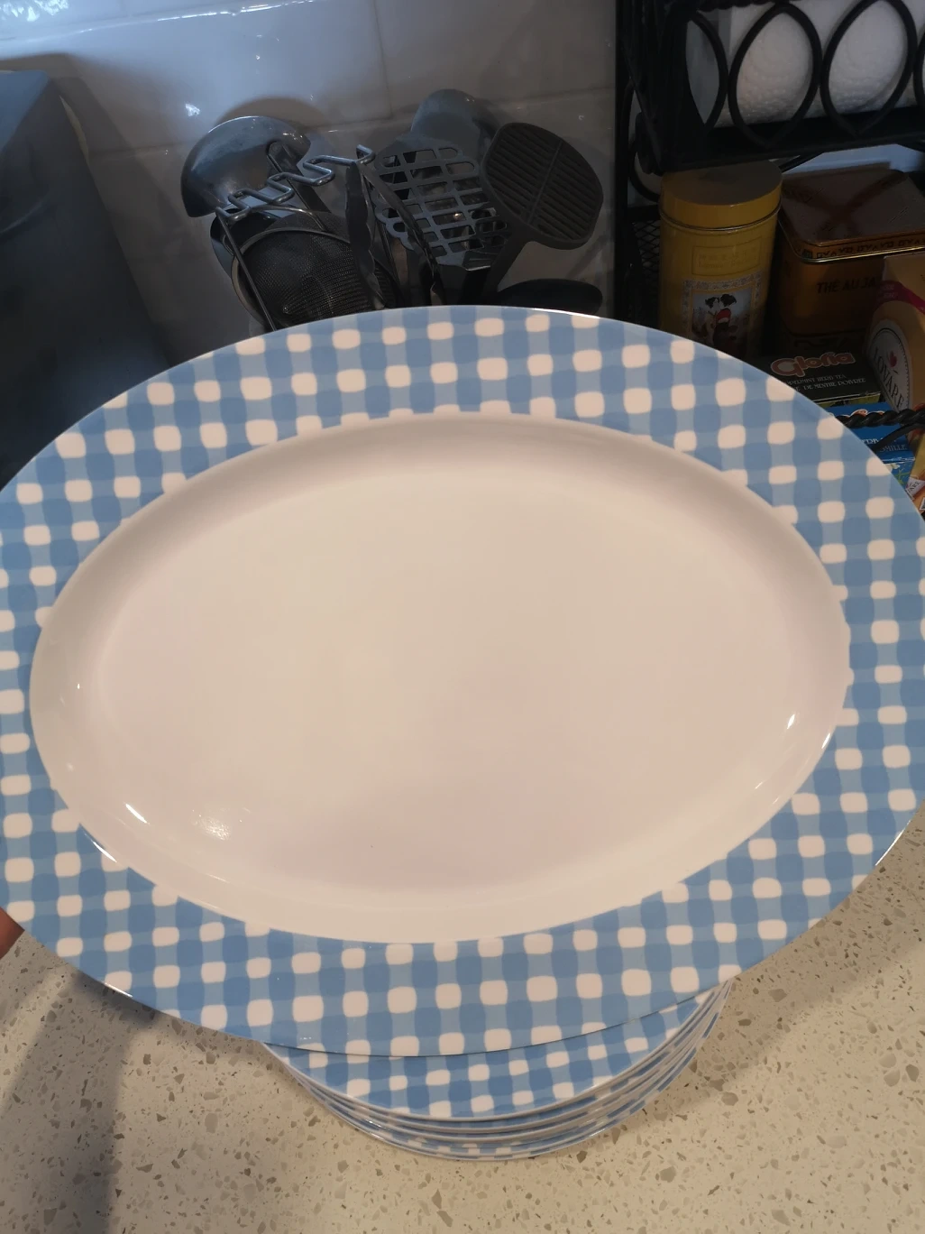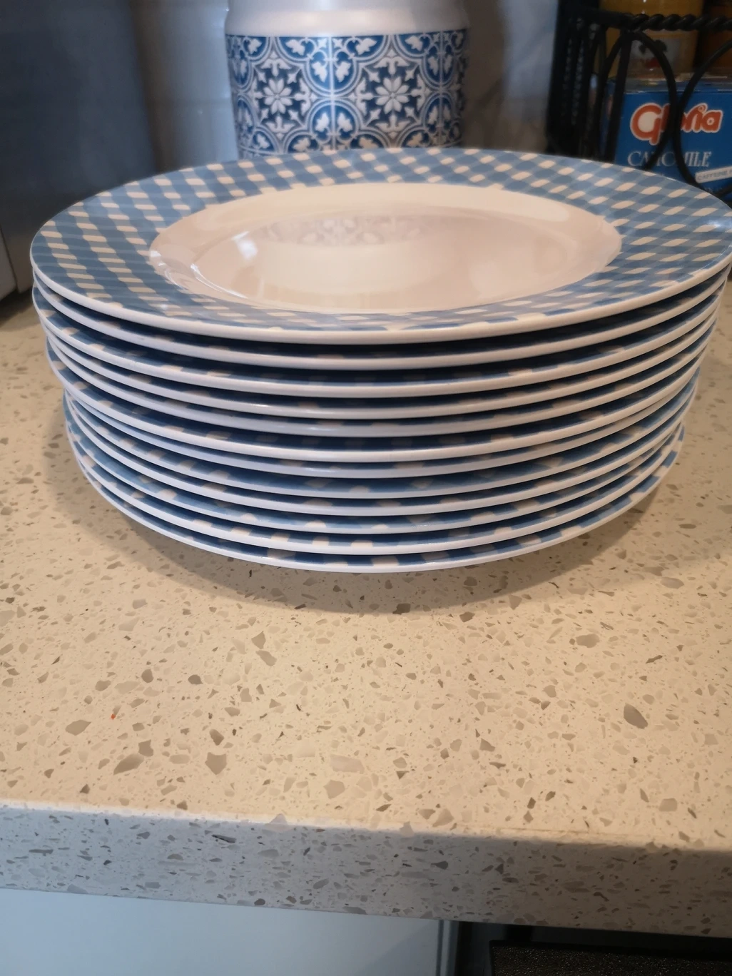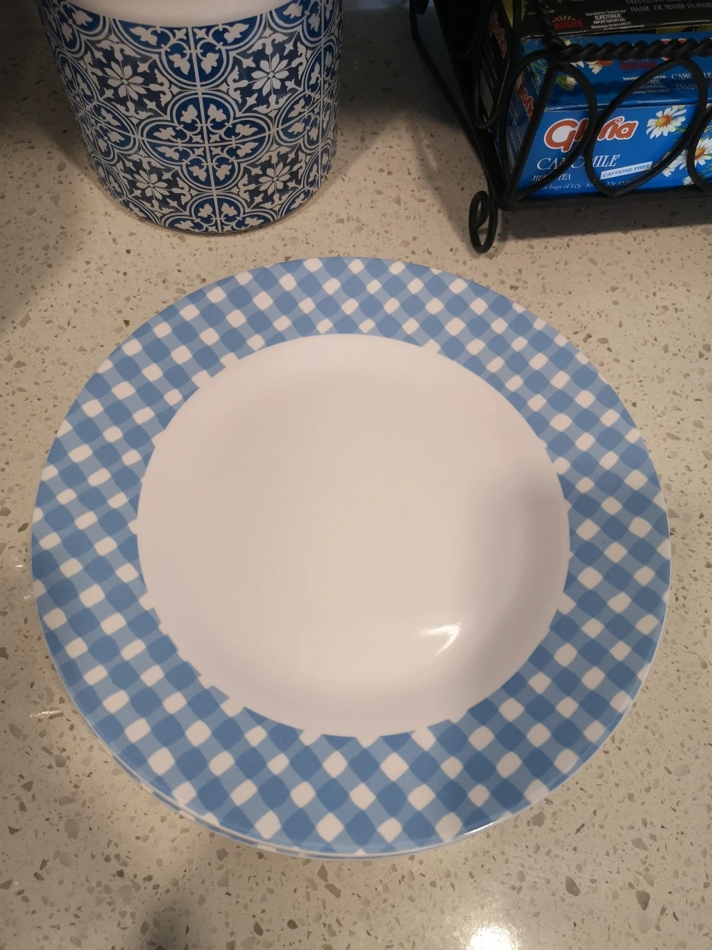 these plates are in excellent condition and originally from Zellers. Pretty blue pattern for outdoor parties or bbq