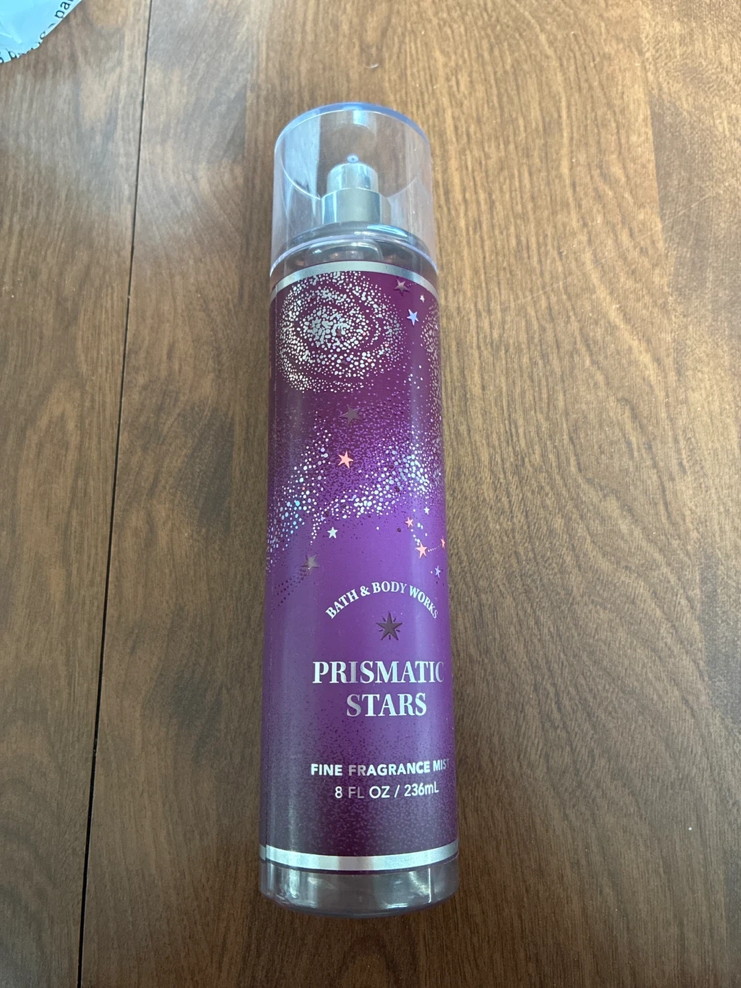 Selling a Bath & Body Works Fine Fragrance Mist in the Prismatic Stars scent! It's an 8 fl oz / 236 ml bottle. The fragrance notes include raspberry stardust, mystic plum, and cosmic cashmere. Perfect for adding a touch of sparkle to your day
