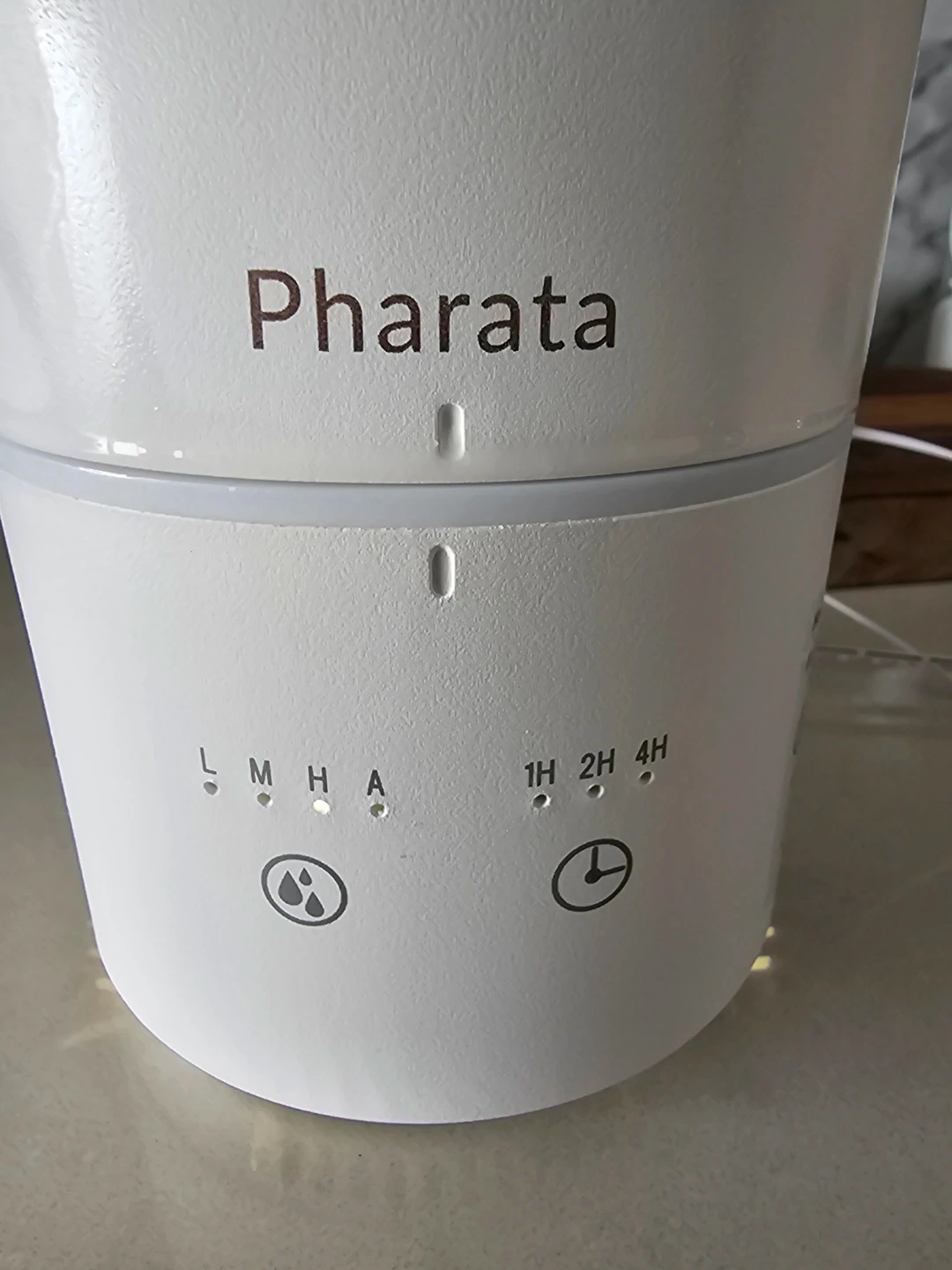 Selling a Pharata humidifier in great condition! It features adjustable settings for humidity levels (L, M, H, A) and timer options (1H, 2H, 4H). A simple and effective way to add moisture to the air in your home. Used a few times. No need for it. Cold mist.