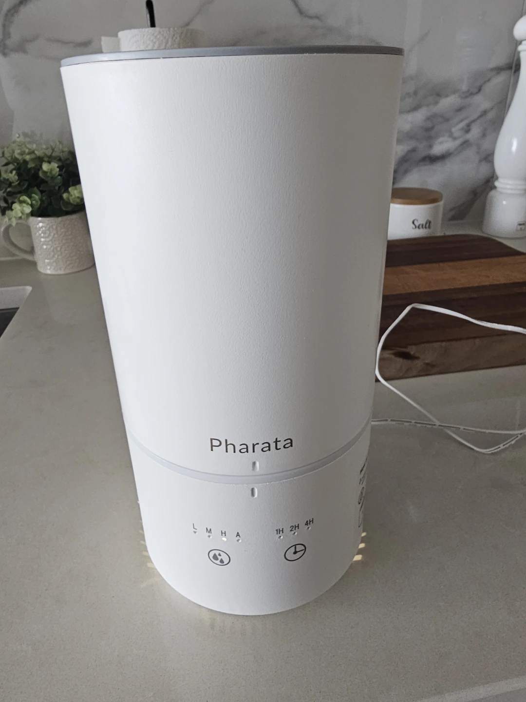 Selling a Pharata humidifier in great condition! It features adjustable settings for humidity levels (L, M, H, A) and timer options (1H, 2H, 4H). A simple and effective way to add moisture to the air in your home. Used a few times. No need for it. Cold mist.