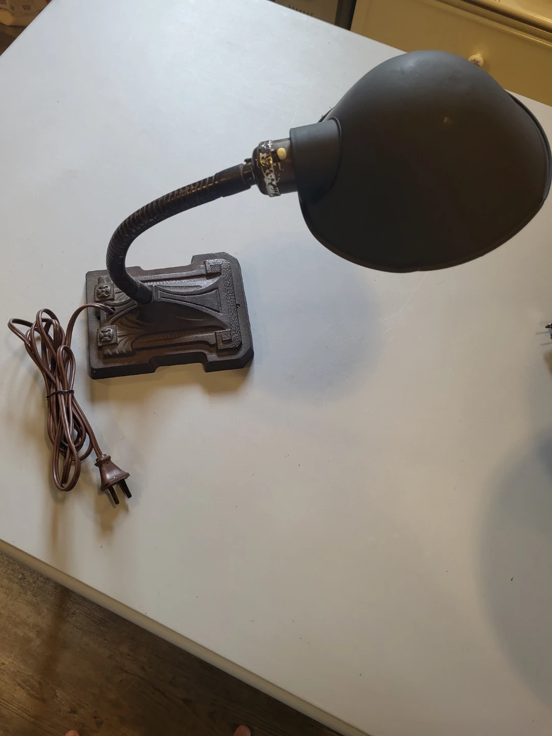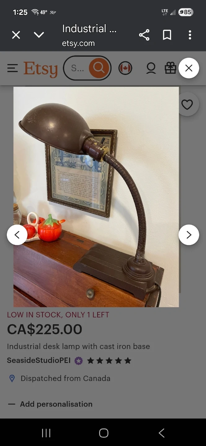 Selling an industrial-style desk lamp with a cast iron base. It's a unique piece that would add a touch of vintage charm to any desk or workspace. The lamp is in good condition and ready to light up your space! 2nd Pic is for reference only