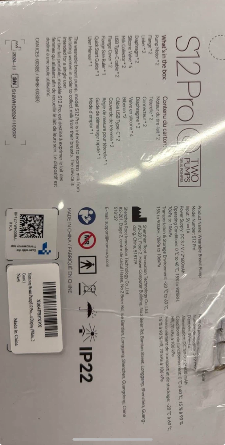Selling a brand new Momcozy S12 Pro Wearable Breast Pump! It's still in its original packaging and has never been used.