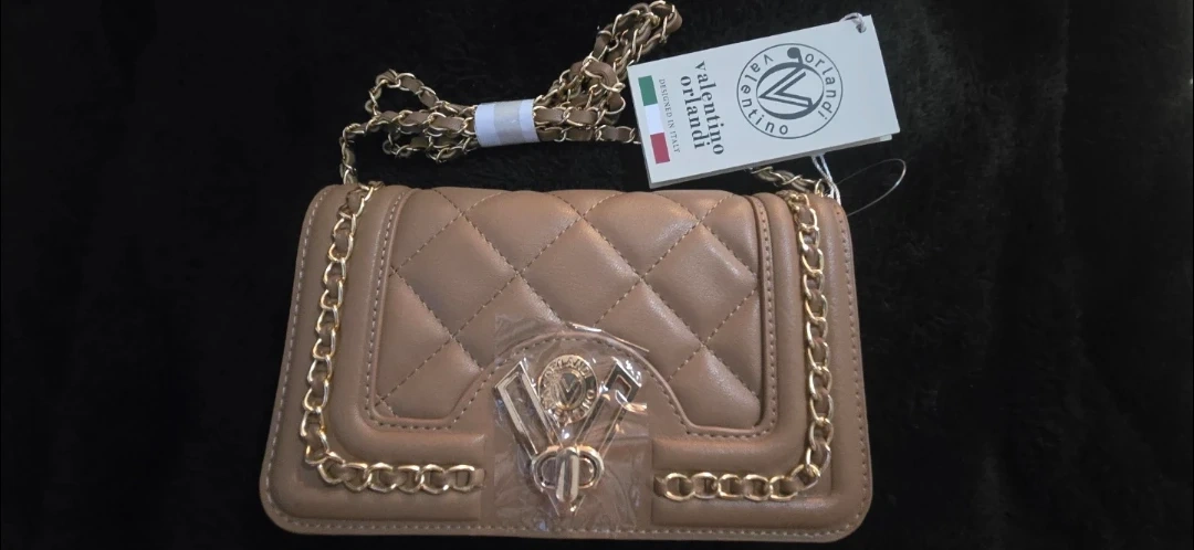This is a beautiful authentic Valentino Orlandi quilted chain bag. It has a classic design with a luxurious feel and taupe color. The bag is in new condition and ready to elevate your style!
