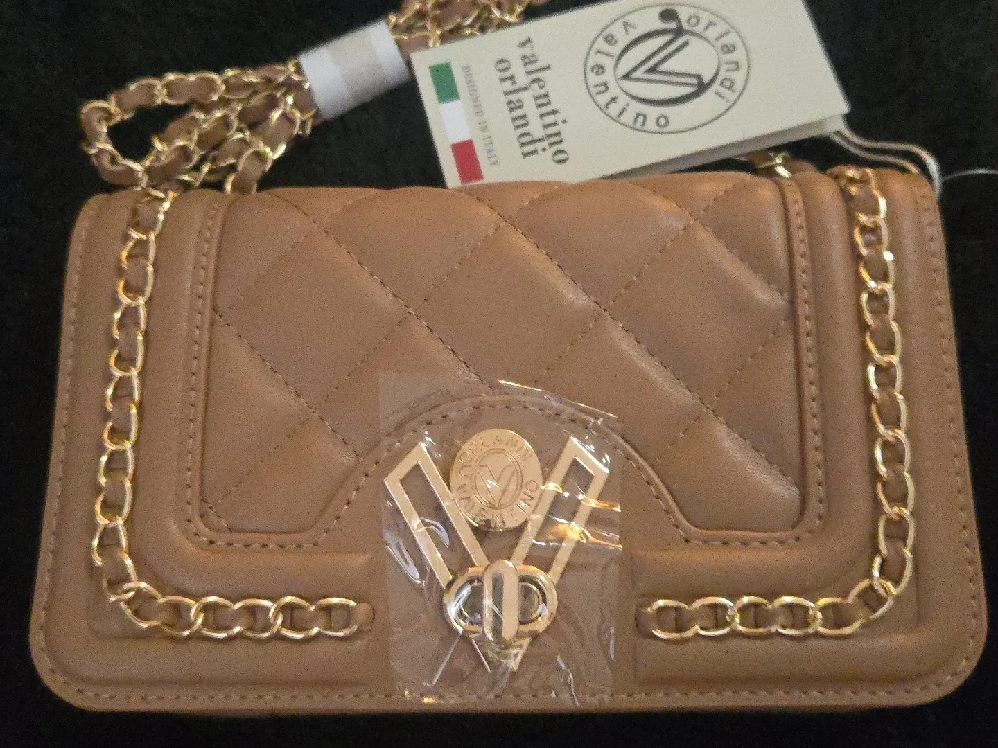 This is a beautiful authentic Valentino Orlandi quilted chain bag. It has a classic design with a luxurious feel and taupe color. The bag is in new condition and ready to elevate your style!
