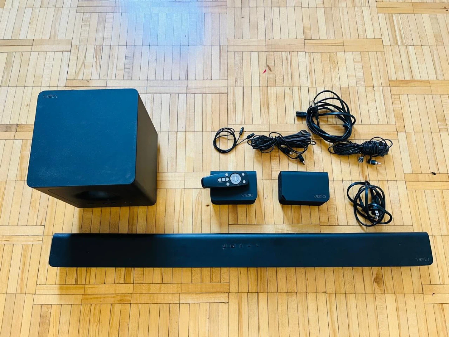 Selling a Vizio soundbar setup! It comes with the soundbar itself, a subwoofer, a remote, and all the necessary cables. Everything you need for great sound is included!