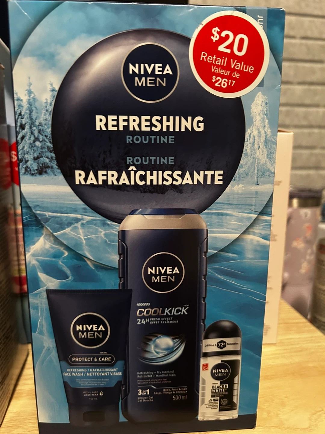 Selling a Nivea Men Refreshing Routine set! This includes a refreshing face wash, Cool Kick shower gel, and Black & White deodorant. Retails for $20!