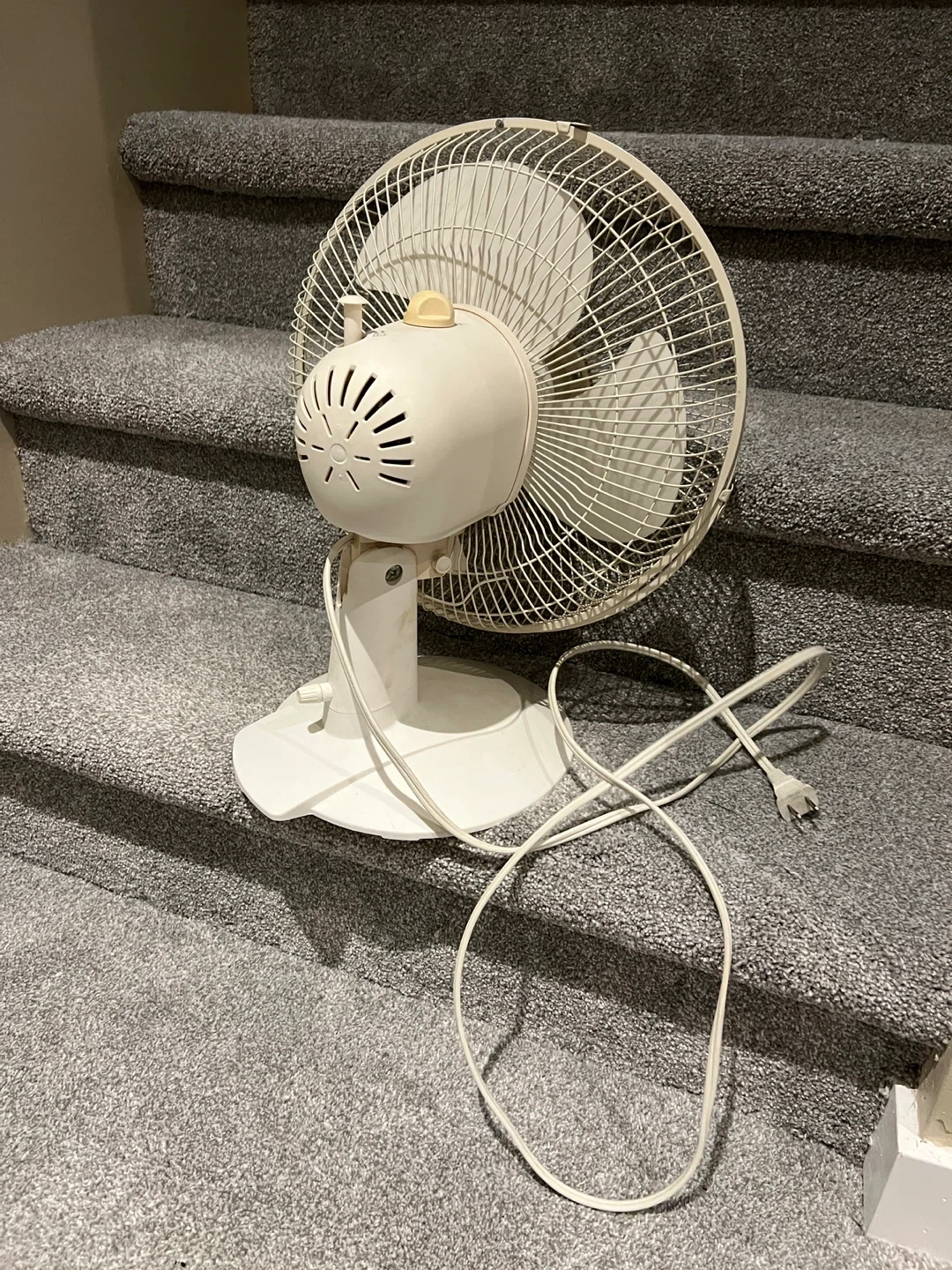 Selling a gently used white table fan. It has adjustable speed settings from low to high. Perfect for keeping cool on warm days!