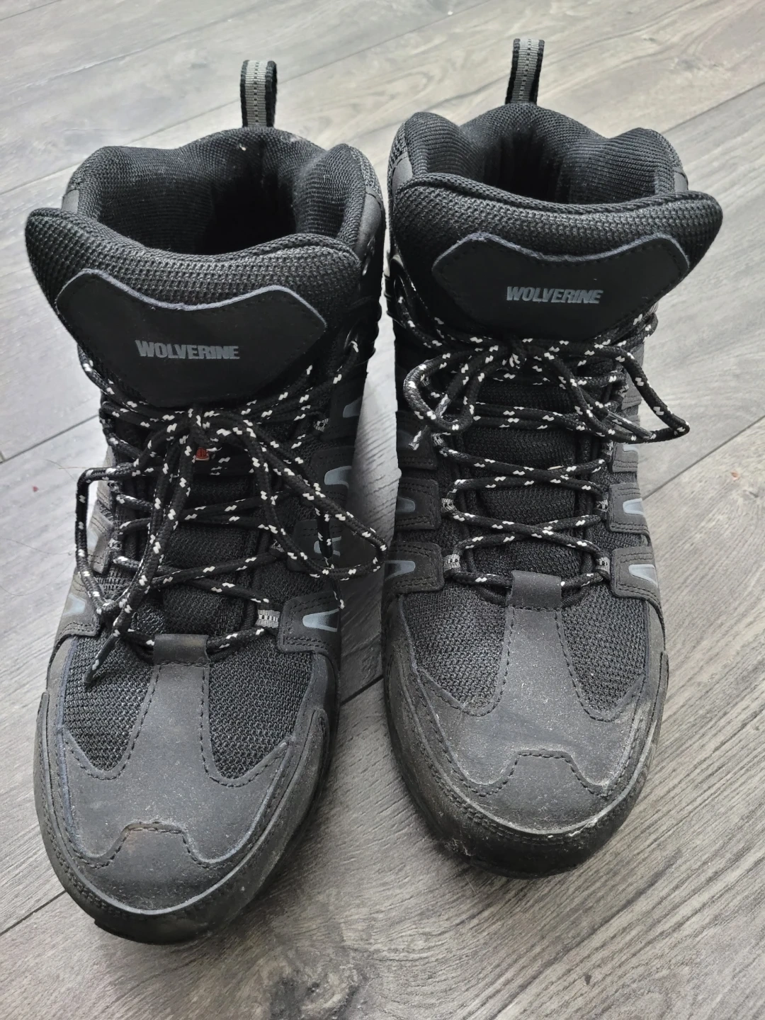 Selling a pair of Wolverine hiking boots in size 9.5EW. They are black and have some signs of use, but are still in good condition for hitting the trails! The manufacturing date on the label is 2017 March 15.